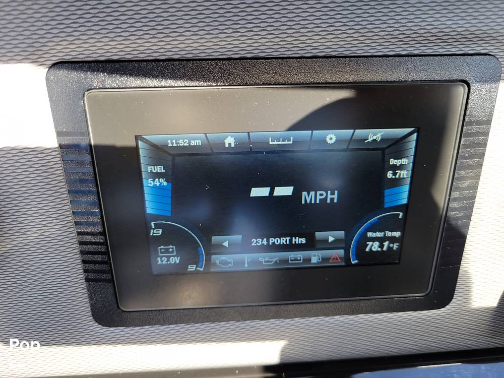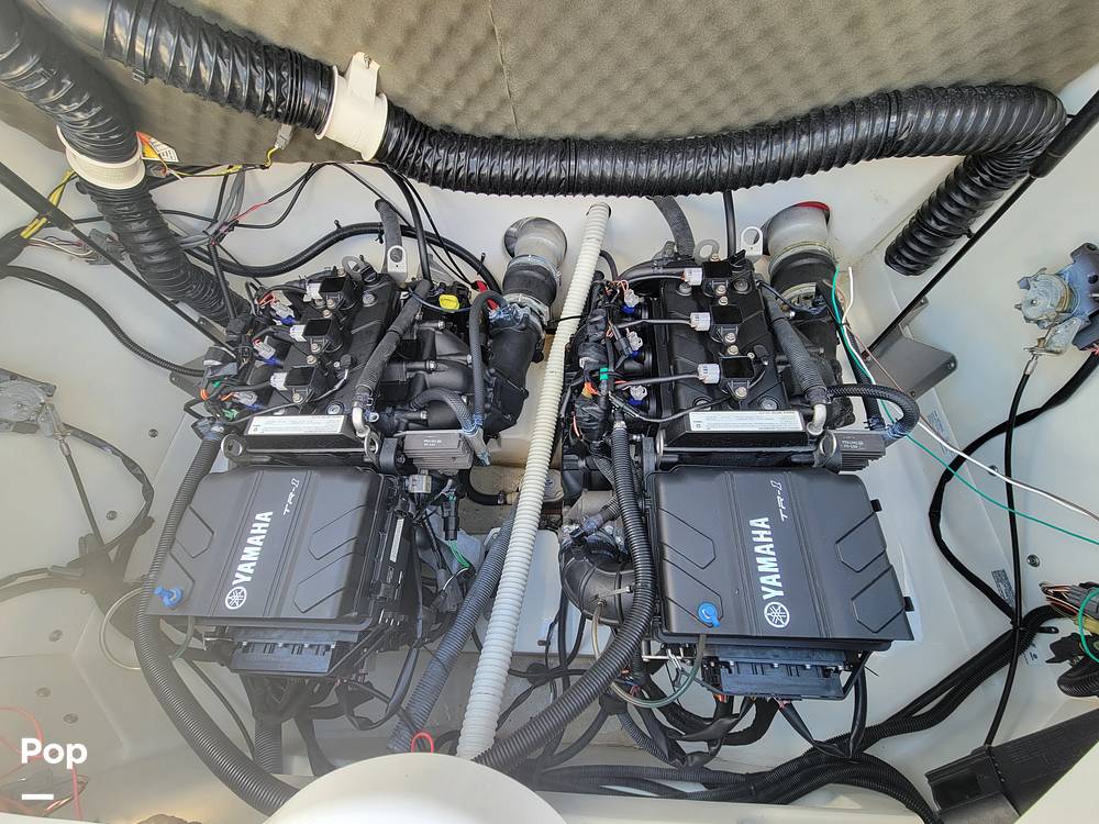 The twin 135-horsepower engines push the boat past 40 MPH. It has plenty of power to pull skiers for watersports. The boat has a wake mode for your skiers. The boat was upgraded with Cobra Jet Steering for easy maneuvering at slow speeds.
