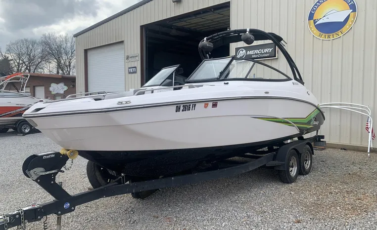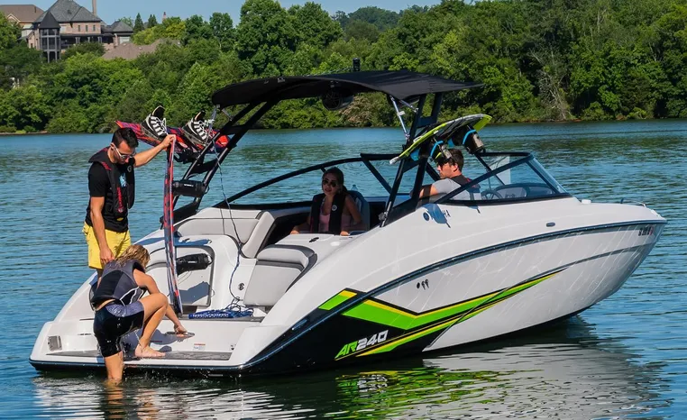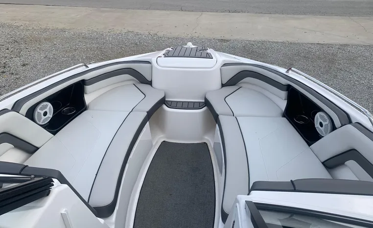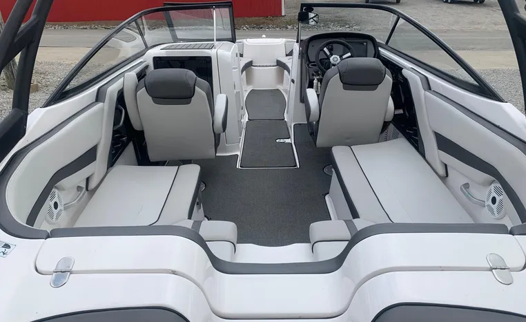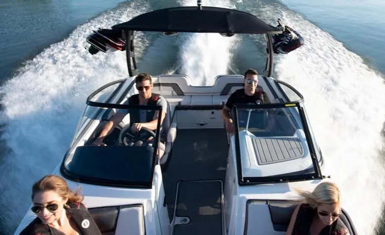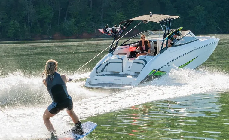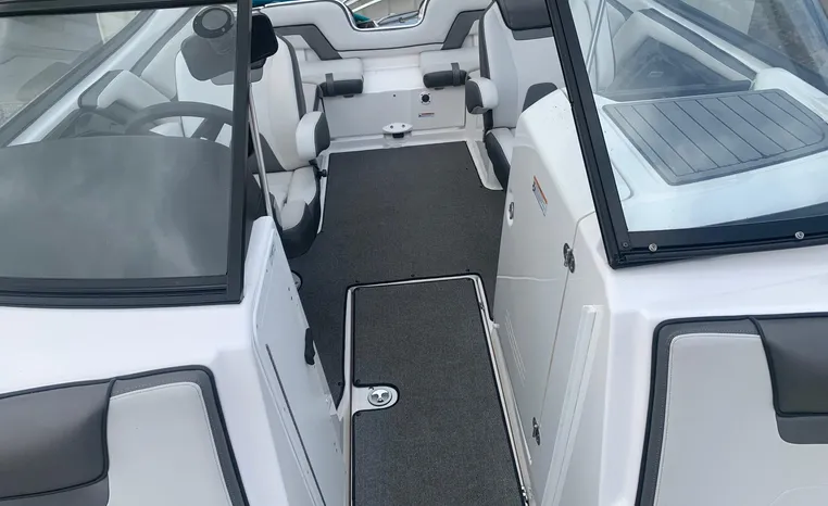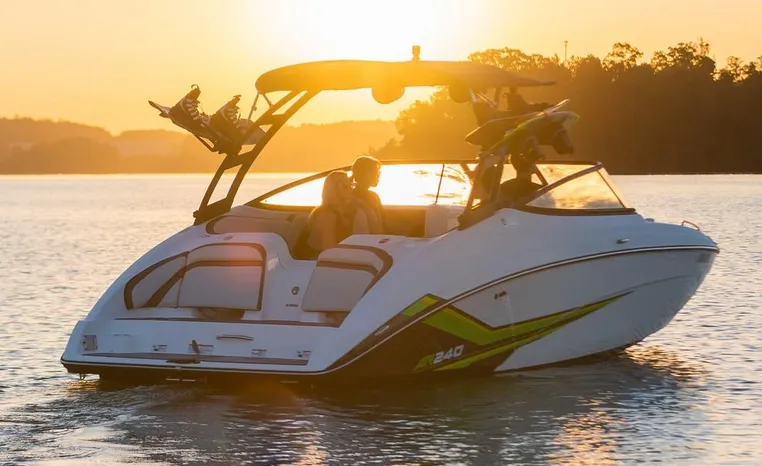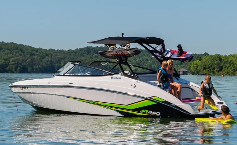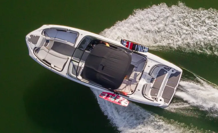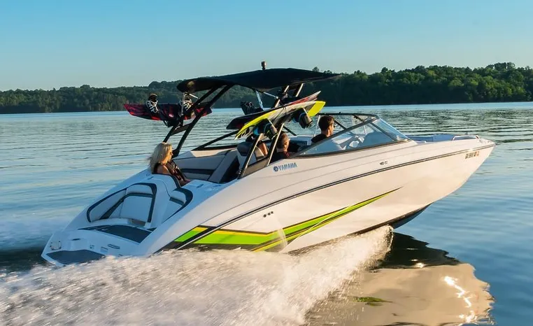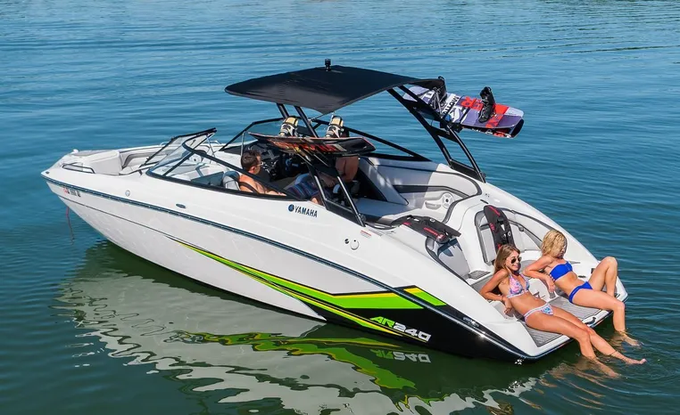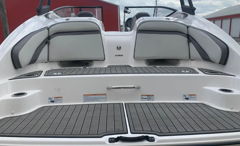 Yamaha's renowned internal propulsion system is not only reliable and fuel-efficient, it also offers the highest level of freedom achievable on the water. The concept is simple: Water is pulled through internally housed propellers and pushed out through marine engines with high thrust points. This technology eliminates the need for an exposed drivetrain, allowing Yamaha boats to plane quicker with less bow rise. The minimal draft makes navigating shallow areas easy. But the benefits don’t end there - internal propulsion eliminates the need for a bulky engine hatch, opening up an expansive swim platform where family and friends can relax close to the water.