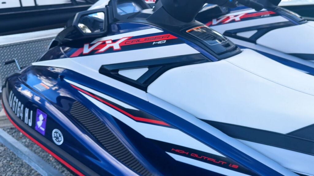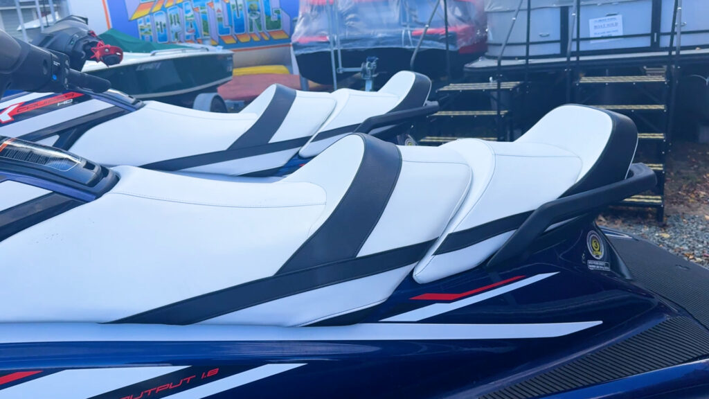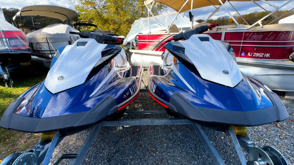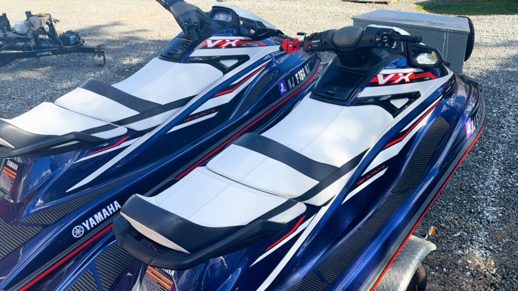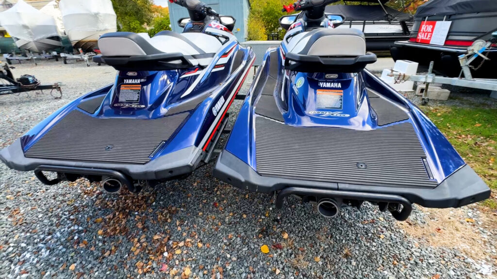 Features on this pair of PWCs include Intelligent Braking and Reverse, digital gauges, mirrors, cruise control, no wake mode, handlebar grips, spacious storage, seating for three with grab handles, a large swim platform with step ladder, and more!