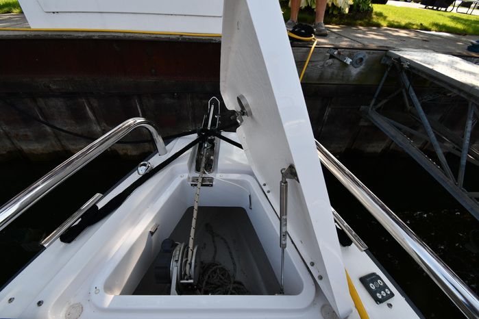 Freshwater / Great Lakes boat since new this vessel features a Single Mercury 350-hp Verado with only 194 original hours. Notable features include but are not limited to the following: Enclosed Head (Electric-Flush) w/Vanity/Sink, Windlass Anchor w/Forward Control, Bow-Thruster, Garmin NAV Package w/Garmin 110i VHF Marine Radio, Garmin GSD 25+ GT40-TM Sounder, Garmin GPSMap 1222 Color / TouchScreen GPS/Chartplotter, Premium Fusion Sound System w/Bluetooth, Ski-Tow Polished Stainless-Steel Arch Aft, Full Pilothouse Canvas Covers, Manual Hardtop Sun-Shade w/Canvas-Cover, and MUCH more!