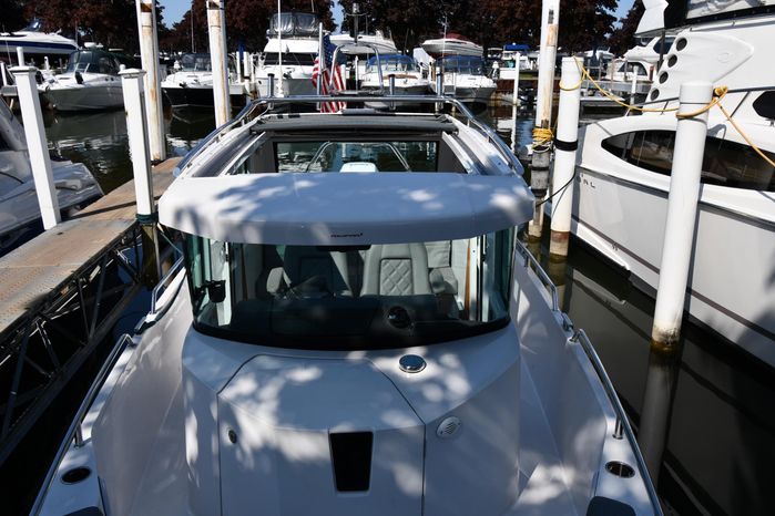 Freshwater / Great Lakes boat since new this vessel features a Single Mercury 350-hp Verado with only 194 original hours. Notable features include but are not limited to the following: Enclosed Head (Electric-Flush) w/Vanity/Sink, Windlass Anchor w/Forward Control, Bow-Thruster, Garmin NAV Package w/Garmin 110i VHF Marine Radio, Garmin GSD 25+ GT40-TM Sounder, Garmin GPSMap 1222 Color / TouchScreen GPS/Chartplotter, Premium Fusion Sound System w/Bluetooth, Ski-Tow Polished Stainless-Steel Arch Aft, Full Pilothouse Canvas Covers, Manual Hardtop Sun-Shade w/Canvas-Cover, and MUCH more!