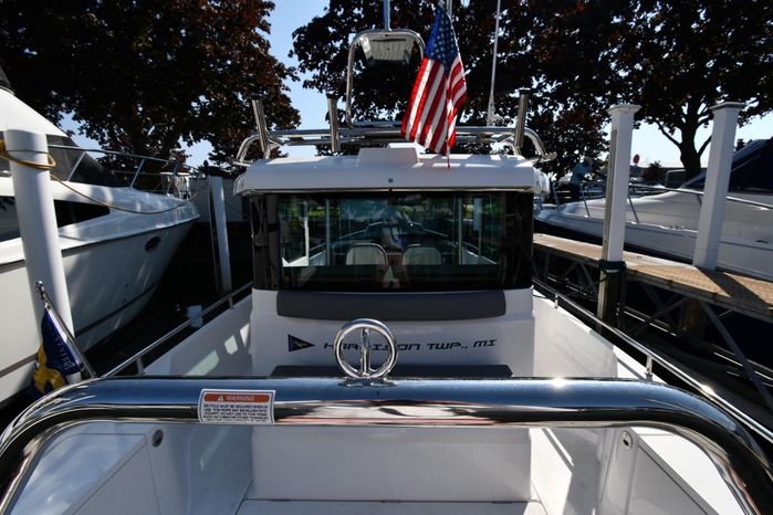 Freshwater / Great Lakes boat since new this vessel features a Single Mercury 350-hp Verado with only 194 original hours. Notable features include but are not limited to the following: Enclosed Head (Electric-Flush) w/Vanity/Sink, Windlass Anchor w/Forward Control, Bow-Thruster, Garmin NAV Package w/Garmin 110i VHF Marine Radio, Garmin GSD 25+ GT40-TM Sounder, Garmin GPSMap 1222 Color / TouchScreen GPS/Chartplotter, Premium Fusion Sound System w/Bluetooth, Ski-Tow Polished Stainless-Steel Arch Aft, Full Pilothouse Canvas Covers, Manual Hardtop Sun-Shade w/Canvas-Cover, and MUCH more!