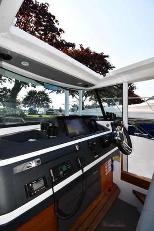 Freshwater / Great Lakes boat since new this vessel features a Single Mercury 350-hp Verado with only 194 original hours. Notable features include but are not limited to the following: Enclosed Head (Electric-Flush) w/Vanity/Sink, Windlass Anchor w/Forward Control, Bow-Thruster, Garmin NAV Package w/Garmin 110i VHF Marine Radio, Garmin GSD 25+ GT40-TM Sounder, Garmin GPSMap 1222 Color / TouchScreen GPS/Chartplotter, Premium Fusion Sound System w/Bluetooth, Ski-Tow Polished Stainless-Steel Arch Aft, Full Pilothouse Canvas Covers, Manual Hardtop Sun-Shade w/Canvas-Cover, and MUCH more!