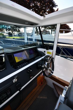 Freshwater / Great Lakes boat since new this vessel features a Single Mercury 350-hp Verado with only 194 original hours. Notable features include but are not limited to the following: Enclosed Head (Electric-Flush) w/Vanity/Sink, Windlass Anchor w/Forward Control, Bow-Thruster, Garmin NAV Package w/Garmin 110i VHF Marine Radio, Garmin GSD 25+ GT40-TM Sounder, Garmin GPSMap 1222 Color / TouchScreen GPS/Chartplotter, Premium Fusion Sound System w/Bluetooth, Ski-Tow Polished Stainless-Steel Arch Aft, Full Pilothouse Canvas Covers, Manual Hardtop Sun-Shade w/Canvas-Cover, and MUCH more!