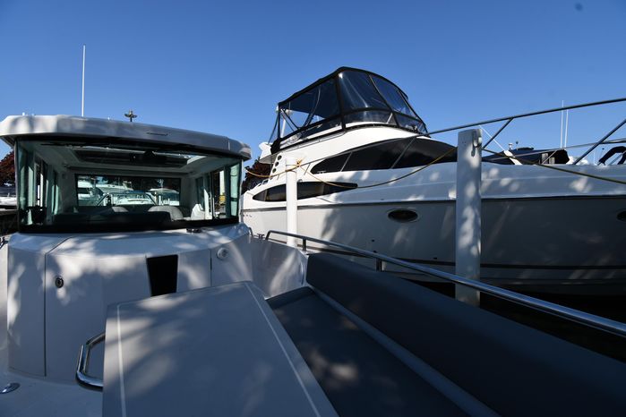 Freshwater / Great Lakes boat since new this vessel features a Single Mercury 350-hp Verado with only 194 original hours. Notable features include but are not limited to the following: Enclosed Head (Electric-Flush) w/Vanity/Sink, Windlass Anchor w/Forward Control, Bow-Thruster, Garmin NAV Package w/Garmin 110i VHF Marine Radio, Garmin GSD 25+ GT40-TM Sounder, Garmin GPSMap 1222 Color / TouchScreen GPS/Chartplotter, Premium Fusion Sound System w/Bluetooth, Ski-Tow Polished Stainless-Steel Arch Aft, Full Pilothouse Canvas Covers, Manual Hardtop Sun-Shade w/Canvas-Cover, and MUCH more!