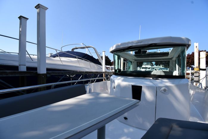 Freshwater / Great Lakes boat since new this vessel features a Single Mercury 350-hp Verado with only 194 original hours. Notable features include but are not limited to the following: Enclosed Head (Electric-Flush) w/Vanity/Sink, Windlass Anchor w/Forward Control, Bow-Thruster, Garmin NAV Package w/Garmin 110i VHF Marine Radio, Garmin GSD 25+ GT40-TM Sounder, Garmin GPSMap 1222 Color / TouchScreen GPS/Chartplotter, Premium Fusion Sound System w/Bluetooth, Ski-Tow Polished Stainless-Steel Arch Aft, Full Pilothouse Canvas Covers, Manual Hardtop Sun-Shade w/Canvas-Cover, and MUCH more!