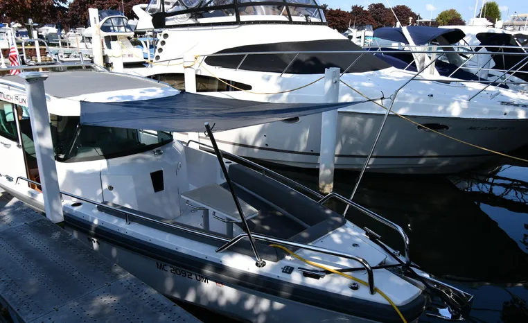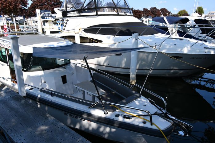 Broker Notes: Limited supply within the marketplace especially for this model within the Great Lakes marketplace! Note underwater lighting, Forward bow canvas-cover, forward bow sun-shade (please see photos), note refrigerator box underneath companion seat inside pilothouse - sink underneath helm seat, 4-step swim / boarding ladder. Highly recommended by listing agent!