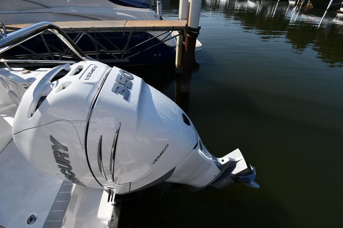 Freshwater / Great Lakes boat since new this vessel features a Single Mercury 350-hp Verado with only 194 original hours. Notable features include but are not limited to the following: Enclosed Head (Electric-Flush) w/Vanity/Sink, Windlass Anchor w/Forward Control, Bow-Thruster, Garmin NAV Package w/Garmin 110i VHF Marine Radio, Garmin GSD 25+ GT40-TM Sounder, Garmin GPSMap 1222 Color / TouchScreen GPS/Chartplotter, Premium Fusion Sound System w/Bluetooth, Ski-Tow Polished Stainless-Steel Arch Aft, Full Pilothouse Canvas Covers, Manual Hardtop Sun-Shade w/Canvas-Cover, and MUCH more!