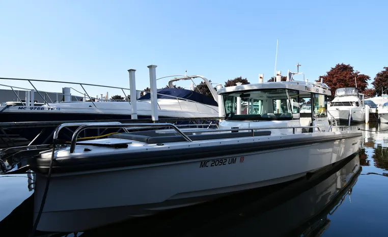 Freshwater / Great Lakes boat since new this vessel features a Single Mercury 350-hp Verado with only 194 original hours. Notable features include but are not limited to the following: Enclosed Head (Electric-Flush) w/Vanity/Sink, Windlass Anchor w/Forward Control, Bow-Thruster, Garmin NAV Package w/Garmin 110i VHF Marine Radio, Garmin GSD 25+ GT40-TM Sounder, Garmin GPSMap 1222 Color / TouchScreen GPS/Chartplotter, Premium Fusion Sound System w/Bluetooth, Ski-Tow Polished Stainless-Steel Arch Aft, Full Pilothouse Canvas Covers, Manual Hardtop Sun-Shade w/Canvas-Cover, and MUCH more!