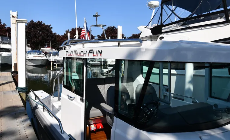 Freshwater / Great Lakes boat since new this vessel features a Single Mercury 350-hp Verado with only 194 original hours. Notable features include but are not limited to the following: Enclosed Head (Electric-Flush) w/Vanity/Sink, Windlass Anchor w/Forward Control, Bow-Thruster, Garmin NAV Package w/Garmin 110i VHF Marine Radio, Garmin GSD 25+ GT40-TM Sounder, Garmin GPSMap 1222 Color / TouchScreen GPS/Chartplotter, Premium Fusion Sound System w/Bluetooth, Ski-Tow Polished Stainless-Steel Arch Aft, Full Pilothouse Canvas Covers, Manual Hardtop Sun-Shade w/Canvas-Cover, and MUCH more!