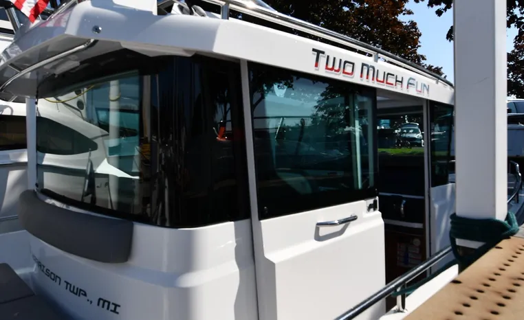 Freshwater / Great Lakes boat since new this vessel features a Single Mercury 350-hp Verado with only 194 original hours. Notable features include but are not limited to the following: Enclosed Head (Electric-Flush) w/Vanity/Sink, Windlass Anchor w/Forward Control, Bow-Thruster, Garmin NAV Package w/Garmin 110i VHF Marine Radio, Garmin GSD 25+ GT40-TM Sounder, Garmin GPSMap 1222 Color / TouchScreen GPS/Chartplotter, Premium Fusion Sound System w/Bluetooth, Ski-Tow Polished Stainless-Steel Arch Aft, Full Pilothouse Canvas Covers, Manual Hardtop Sun-Shade w/Canvas-Cover, and MUCH more!