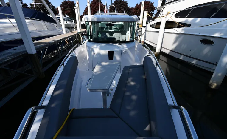 Freshwater / Great Lakes boat since new this vessel features a Single Mercury 350-hp Verado with only 194 original hours. Notable features include but are not limited to the following: Enclosed Head (Electric-Flush) w/Vanity/Sink, Windlass Anchor w/Forward Control, Bow-Thruster, Garmin NAV Package w/Garmin 110i VHF Marine Radio, Garmin GSD 25+ GT40-TM Sounder, Garmin GPSMap 1222 Color / TouchScreen GPS/Chartplotter, Premium Fusion Sound System w/Bluetooth, Ski-Tow Polished Stainless-Steel Arch Aft, Full Pilothouse Canvas Covers, Manual Hardtop Sun-Shade w/Canvas-Cover, and MUCH more!