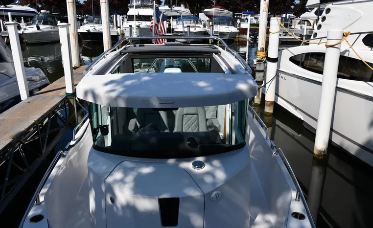 Freshwater / Great Lakes boat since new this vessel features a Single Mercury 350-hp Verado with only 194 original hours. Notable features include but are not limited to the following: Enclosed Head (Electric-Flush) w/Vanity/Sink, Windlass Anchor w/Forward Control, Bow-Thruster, Garmin NAV Package w/Garmin 110i VHF Marine Radio, Garmin GSD 25+ GT40-TM Sounder, Garmin GPSMap 1222 Color / TouchScreen GPS/Chartplotter, Premium Fusion Sound System w/Bluetooth, Ski-Tow Polished Stainless-Steel Arch Aft, Full Pilothouse Canvas Covers, Manual Hardtop Sun-Shade w/Canvas-Cover, and MUCH more!