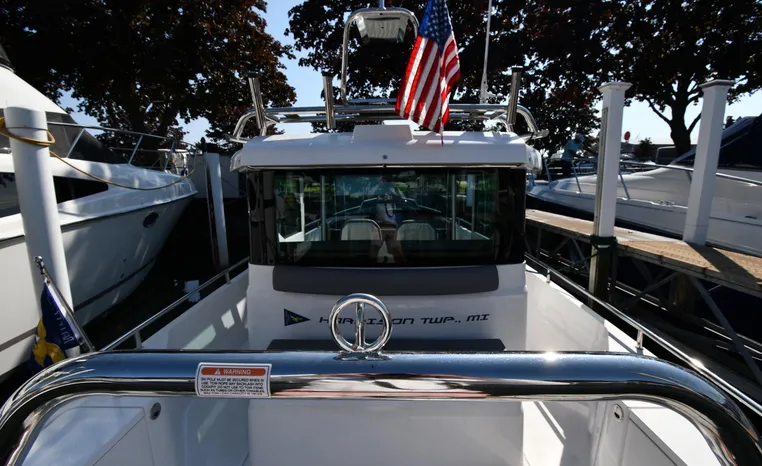 Freshwater / Great Lakes boat since new this vessel features a Single Mercury 350-hp Verado with only 194 original hours. Notable features include but are not limited to the following: Enclosed Head (Electric-Flush) w/Vanity/Sink, Windlass Anchor w/Forward Control, Bow-Thruster, Garmin NAV Package w/Garmin 110i VHF Marine Radio, Garmin GSD 25+ GT40-TM Sounder, Garmin GPSMap 1222 Color / TouchScreen GPS/Chartplotter, Premium Fusion Sound System w/Bluetooth, Ski-Tow Polished Stainless-Steel Arch Aft, Full Pilothouse Canvas Covers, Manual Hardtop Sun-Shade w/Canvas-Cover, and MUCH more!