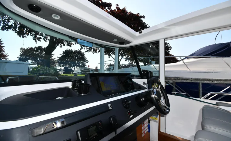 Freshwater / Great Lakes boat since new this vessel features a Single Mercury 350-hp Verado with only 194 original hours. Notable features include but are not limited to the following: Enclosed Head (Electric-Flush) w/Vanity/Sink, Windlass Anchor w/Forward Control, Bow-Thruster, Garmin NAV Package w/Garmin 110i VHF Marine Radio, Garmin GSD 25+ GT40-TM Sounder, Garmin GPSMap 1222 Color / TouchScreen GPS/Chartplotter, Premium Fusion Sound System w/Bluetooth, Ski-Tow Polished Stainless-Steel Arch Aft, Full Pilothouse Canvas Covers, Manual Hardtop Sun-Shade w/Canvas-Cover, and MUCH more!