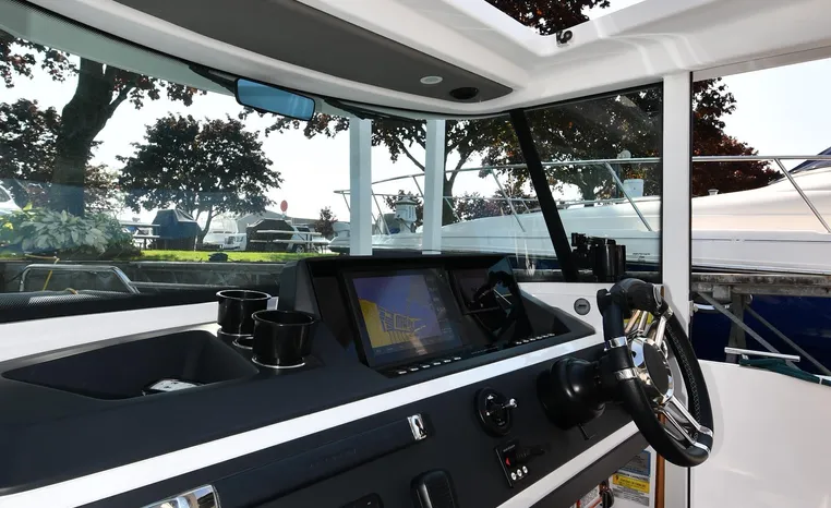 Freshwater / Great Lakes boat since new this vessel features a Single Mercury 350-hp Verado with only 194 original hours. Notable features include but are not limited to the following: Enclosed Head (Electric-Flush) w/Vanity/Sink, Windlass Anchor w/Forward Control, Bow-Thruster, Garmin NAV Package w/Garmin 110i VHF Marine Radio, Garmin GSD 25+ GT40-TM Sounder, Garmin GPSMap 1222 Color / TouchScreen GPS/Chartplotter, Premium Fusion Sound System w/Bluetooth, Ski-Tow Polished Stainless-Steel Arch Aft, Full Pilothouse Canvas Covers, Manual Hardtop Sun-Shade w/Canvas-Cover, and MUCH more!