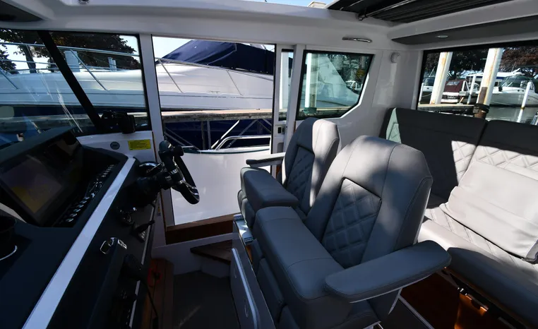 Freshwater / Great Lakes boat since new this vessel features a Single Mercury 350-hp Verado with only 194 original hours. Notable features include but are not limited to the following: Enclosed Head (Electric-Flush) w/Vanity/Sink, Windlass Anchor w/Forward Control, Bow-Thruster, Garmin NAV Package w/Garmin 110i VHF Marine Radio, Garmin GSD 25+ GT40-TM Sounder, Garmin GPSMap 1222 Color / TouchScreen GPS/Chartplotter, Premium Fusion Sound System w/Bluetooth, Ski-Tow Polished Stainless-Steel Arch Aft, Full Pilothouse Canvas Covers, Manual Hardtop Sun-Shade w/Canvas-Cover, and MUCH more!