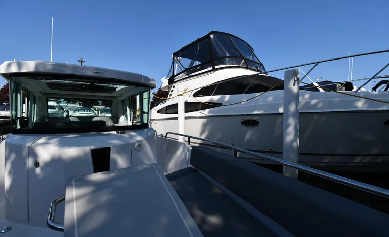 Freshwater / Great Lakes boat since new this vessel features a Single Mercury 350-hp Verado with only 194 original hours. Notable features include but are not limited to the following: Enclosed Head (Electric-Flush) w/Vanity/Sink, Windlass Anchor w/Forward Control, Bow-Thruster, Garmin NAV Package w/Garmin 110i VHF Marine Radio, Garmin GSD 25+ GT40-TM Sounder, Garmin GPSMap 1222 Color / TouchScreen GPS/Chartplotter, Premium Fusion Sound System w/Bluetooth, Ski-Tow Polished Stainless-Steel Arch Aft, Full Pilothouse Canvas Covers, Manual Hardtop Sun-Shade w/Canvas-Cover, and MUCH more!