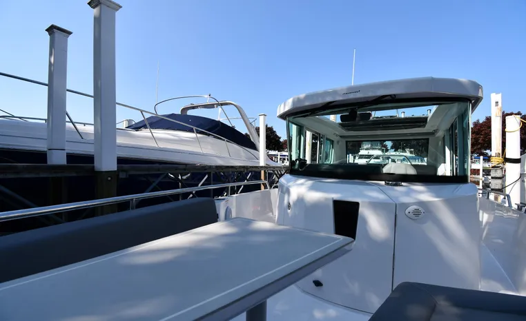Freshwater / Great Lakes boat since new this vessel features a Single Mercury 350-hp Verado with only 194 original hours. Notable features include but are not limited to the following: Enclosed Head (Electric-Flush) w/Vanity/Sink, Windlass Anchor w/Forward Control, Bow-Thruster, Garmin NAV Package w/Garmin 110i VHF Marine Radio, Garmin GSD 25+ GT40-TM Sounder, Garmin GPSMap 1222 Color / TouchScreen GPS/Chartplotter, Premium Fusion Sound System w/Bluetooth, Ski-Tow Polished Stainless-Steel Arch Aft, Full Pilothouse Canvas Covers, Manual Hardtop Sun-Shade w/Canvas-Cover, and MUCH more!