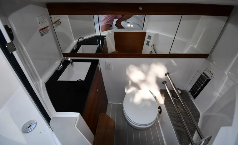 Freshwater / Great Lakes boat since new this vessel features a Single Mercury 350-hp Verado with only 194 original hours. Notable features include but are not limited to the following: Enclosed Head (Electric-Flush) w/Vanity/Sink, Windlass Anchor w/Forward Control, Bow-Thruster, Garmin NAV Package w/Garmin 110i VHF Marine Radio, Garmin GSD 25+ GT40-TM Sounder, Garmin GPSMap 1222 Color / TouchScreen GPS/Chartplotter, Premium Fusion Sound System w/Bluetooth, Ski-Tow Polished Stainless-Steel Arch Aft, Full Pilothouse Canvas Covers, Manual Hardtop Sun-Shade w/Canvas-Cover, and MUCH more!