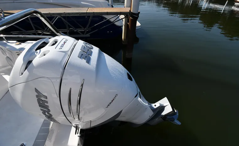 Freshwater / Great Lakes boat since new this vessel features a Single Mercury 350-hp Verado with only 194 original hours. Notable features include but are not limited to the following: Enclosed Head (Electric-Flush) w/Vanity/Sink, Windlass Anchor w/Forward Control, Bow-Thruster, Garmin NAV Package w/Garmin 110i VHF Marine Radio, Garmin GSD 25+ GT40-TM Sounder, Garmin GPSMap 1222 Color / TouchScreen GPS/Chartplotter, Premium Fusion Sound System w/Bluetooth, Ski-Tow Polished Stainless-Steel Arch Aft, Full Pilothouse Canvas Covers, Manual Hardtop Sun-Shade w/Canvas-Cover, and MUCH more!