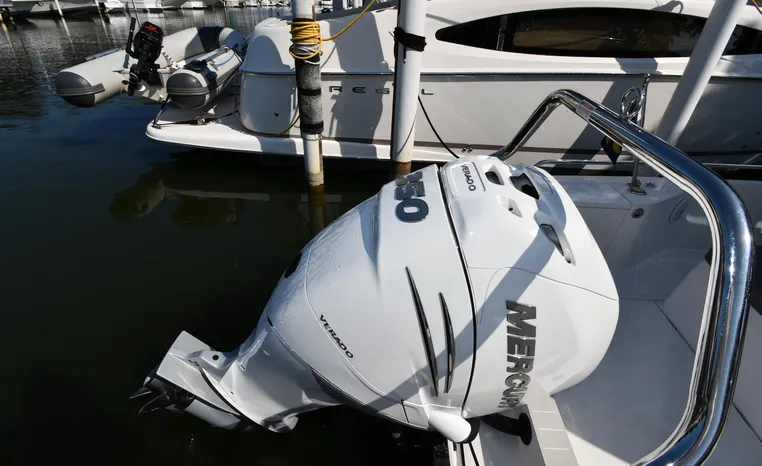 Freshwater / Great Lakes boat since new this vessel features a Single Mercury 350-hp Verado with only 194 original hours. Notable features include but are not limited to the following: Enclosed Head (Electric-Flush) w/Vanity/Sink, Windlass Anchor w/Forward Control, Bow-Thruster, Garmin NAV Package w/Garmin 110i VHF Marine Radio, Garmin GSD 25+ GT40-TM Sounder, Garmin GPSMap 1222 Color / TouchScreen GPS/Chartplotter, Premium Fusion Sound System w/Bluetooth, Ski-Tow Polished Stainless-Steel Arch Aft, Full Pilothouse Canvas Covers, Manual Hardtop Sun-Shade w/Canvas-Cover, and MUCH more!