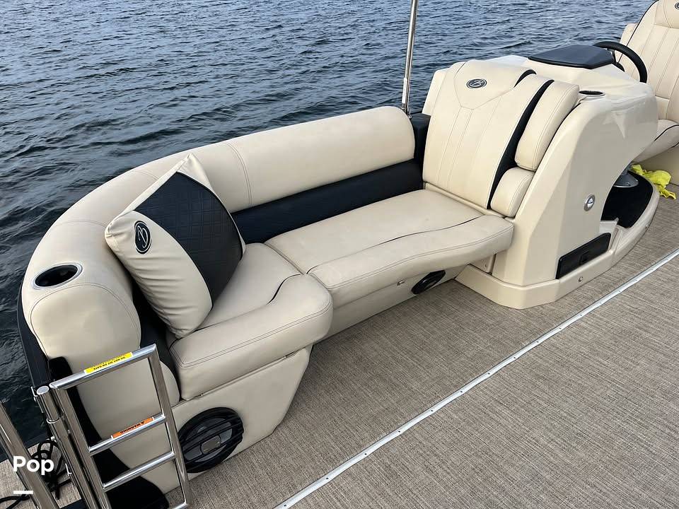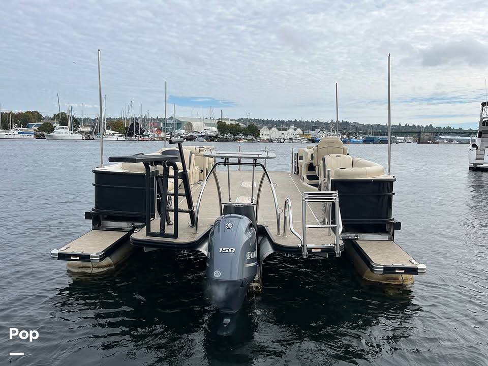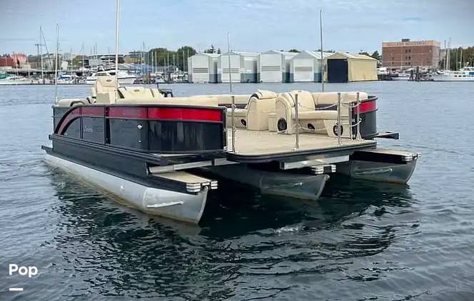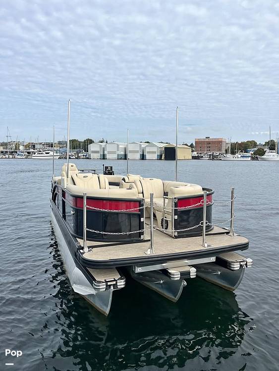 Built by Barletta, a leader in the pontoon and tritoon industry, this boat comes equipped with a Yamaha 150 outboard engine with only 283 hours. The boat includes a wet bar, a diving board on the stern, an underwater LED light system, RGB lighting throughout the interior, and a premium Hertz Bluetooth sound system with double amps. Whether you're cruising the lake or hosting an event, this boat is designed for entertainment.