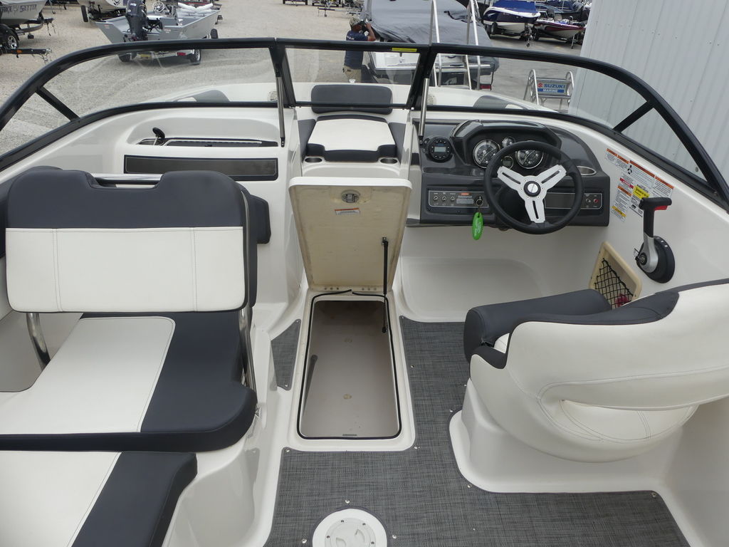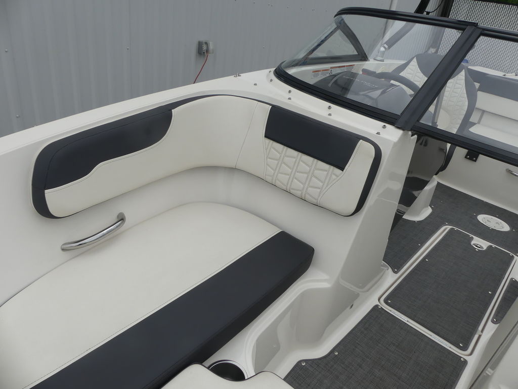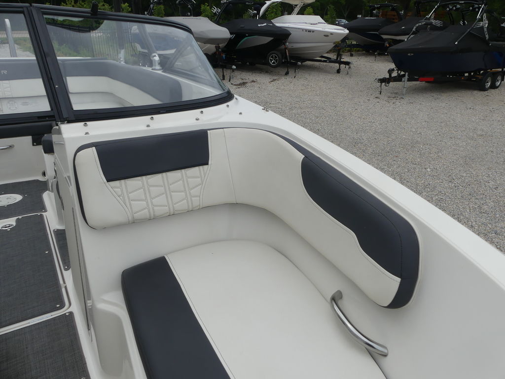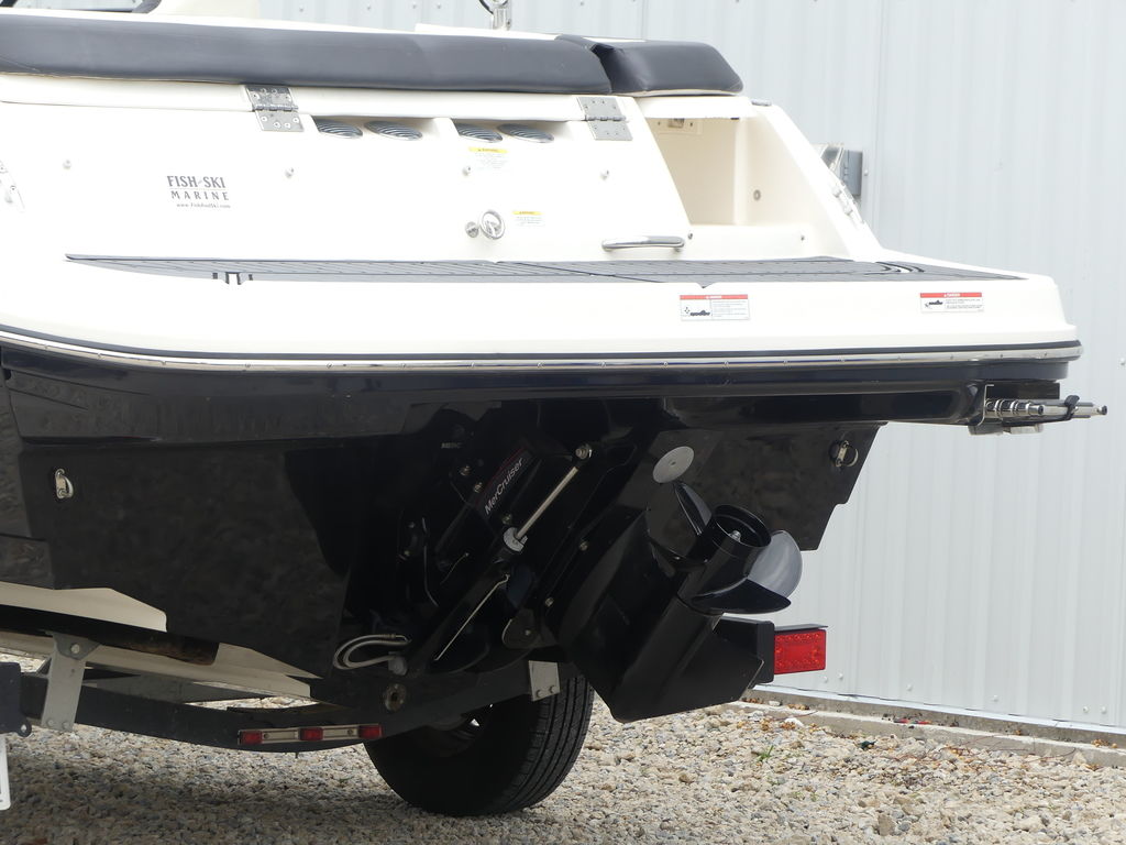 Powered by a reliable Mercury outboard or available sterndrive options, the VR5 delivers responsive performance and efficiency whether you’re cruising the lake or pulling skiers and tubers. The self-bailing cockpit, integrated swim platform with telescoping ladder, and in-floor ski/wakeboard storage make it perfectly equipped for a full day on the water.