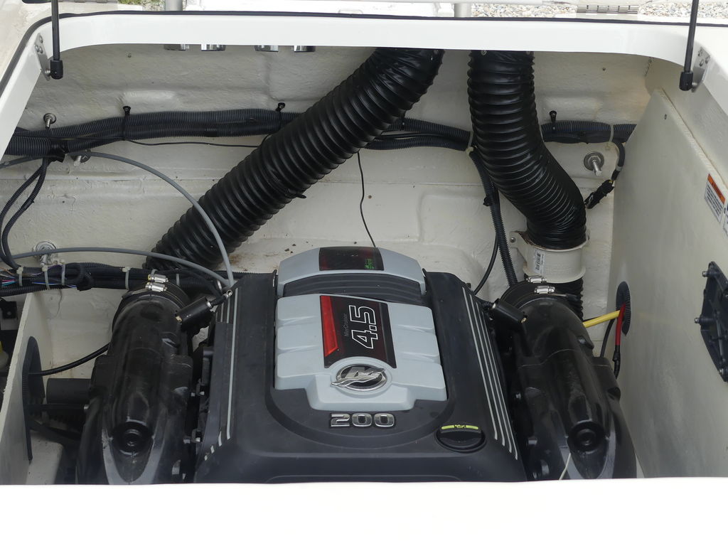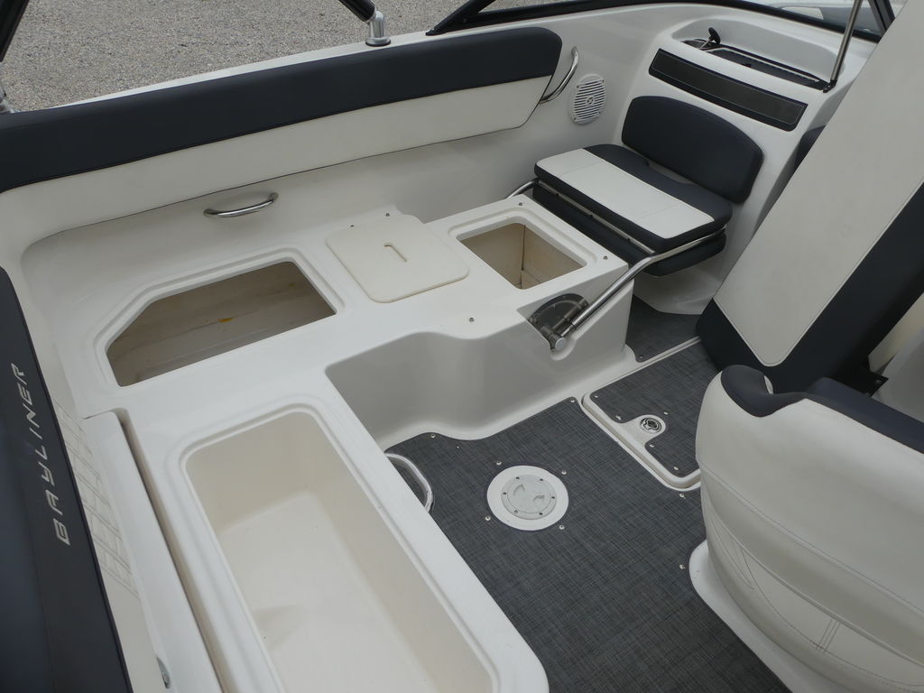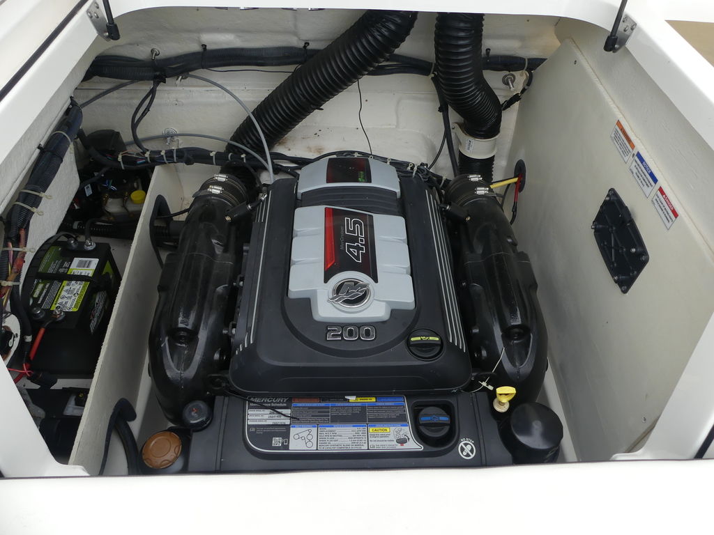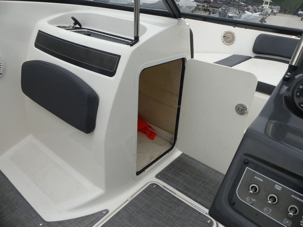 Powered by a reliable Mercury outboard or available sterndrive options, the VR5 delivers responsive performance and efficiency whether you’re cruising the lake or pulling skiers and tubers. The self-bailing cockpit, integrated swim platform with telescoping ladder, and in-floor ski/wakeboard storage make it perfectly equipped for a full day on the water.