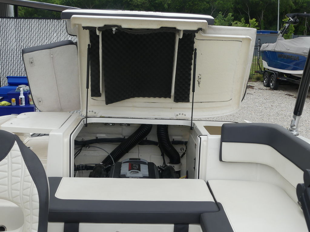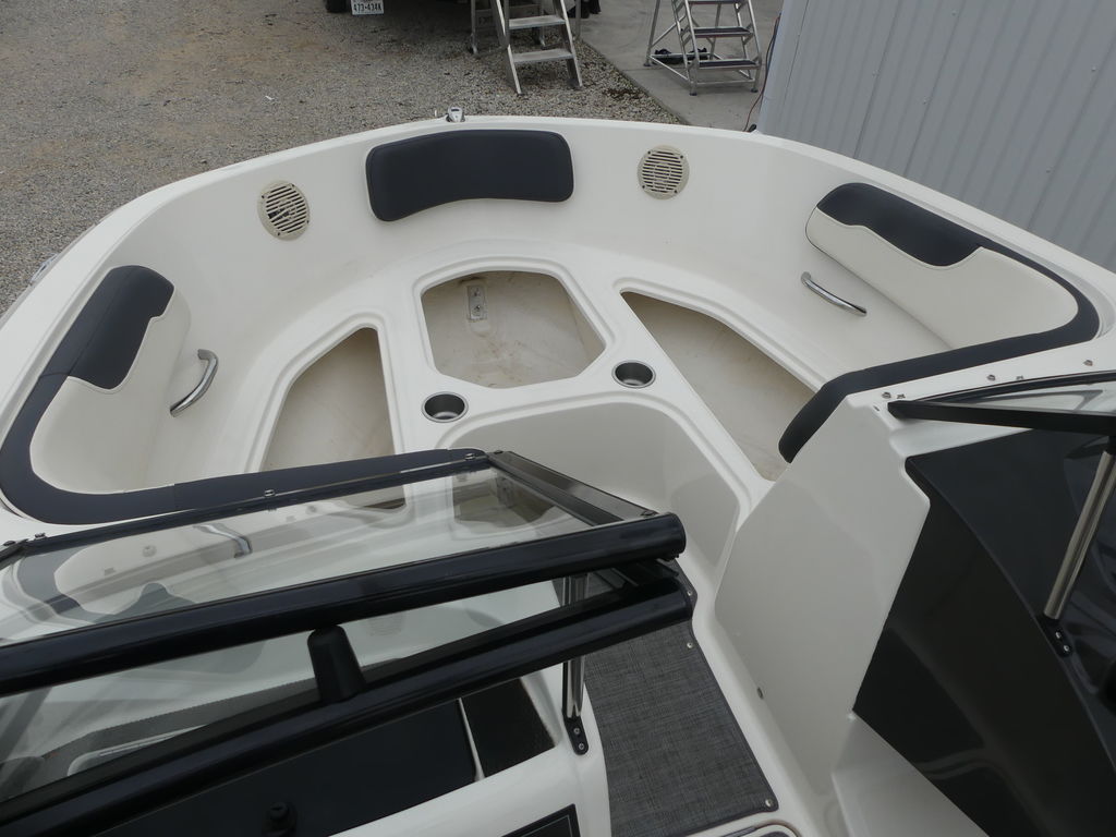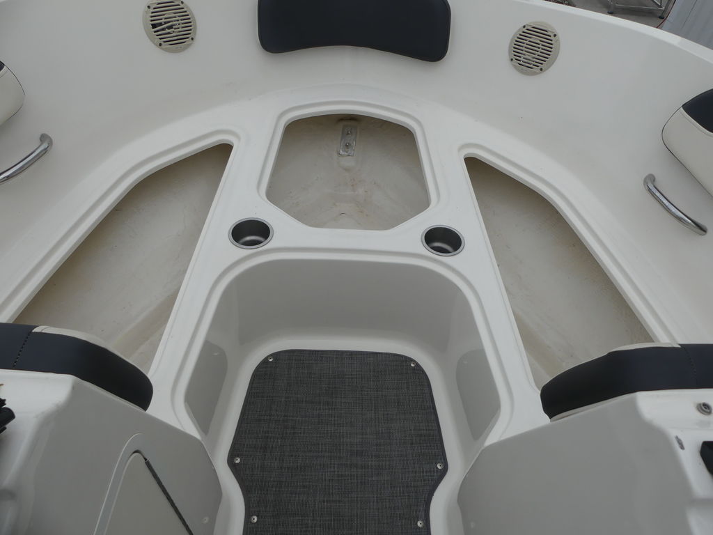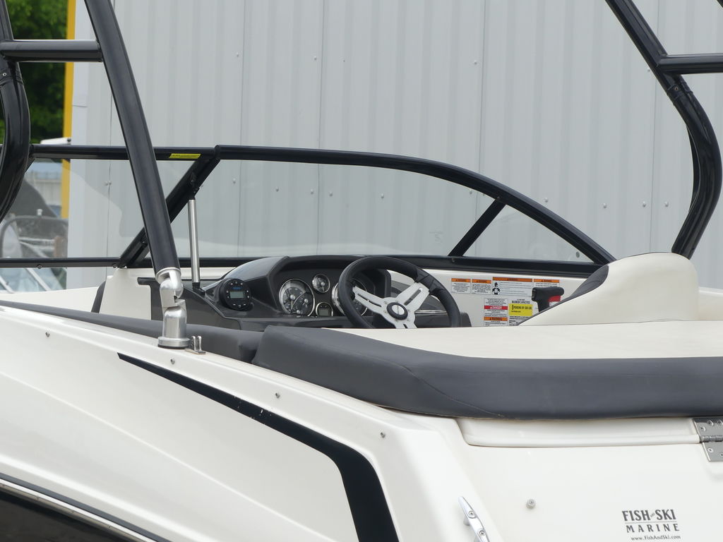 Inside, the boat features comfortable wraparound seating, a swivel helm seat, multi-function gauges, and a premium stereo system. Thoughtful touches like multiple cup holders, ample storage compartments, and a sleek sport windshield enhance both convenience and style.