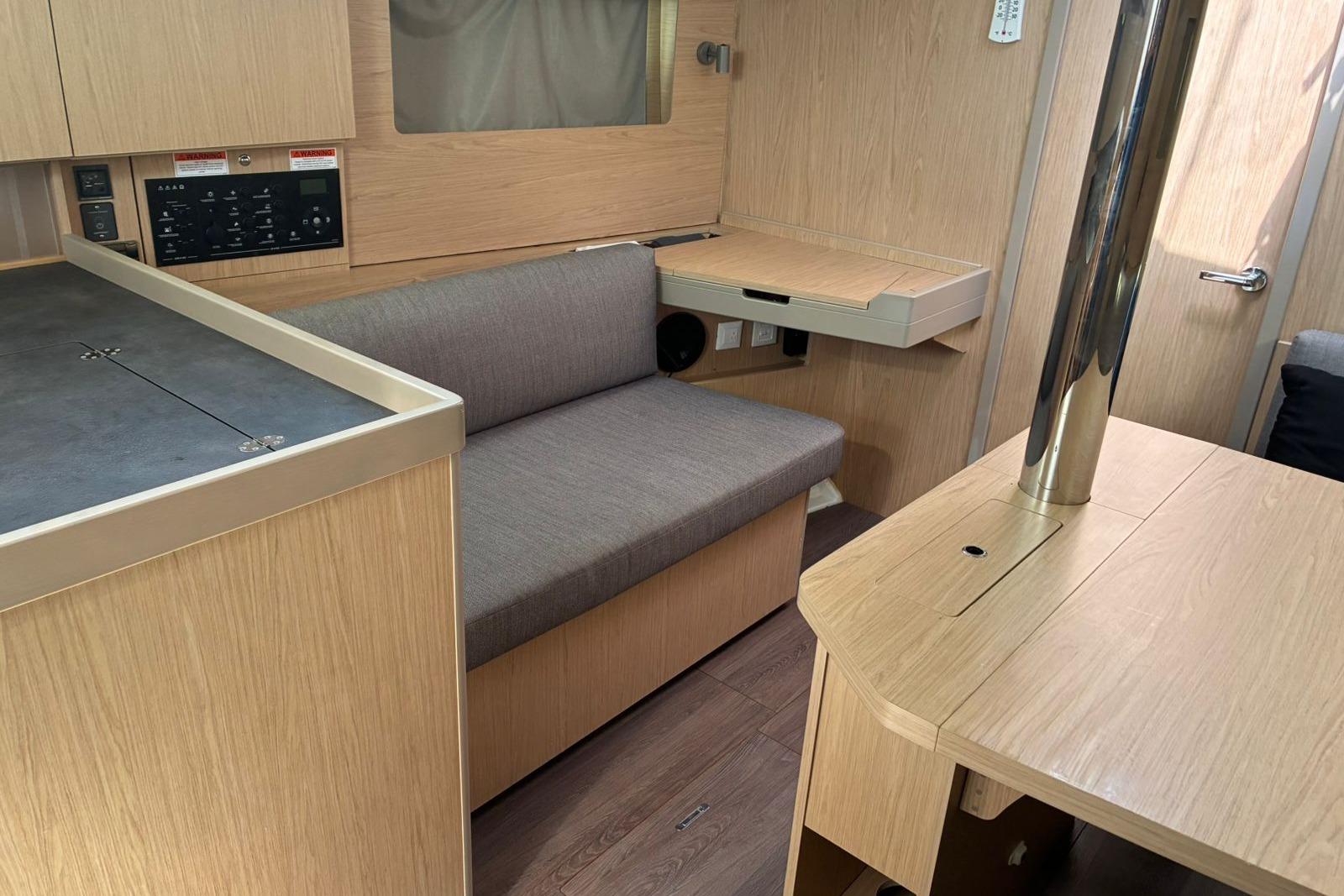 Designed by Finot-Conq and styled by Nauta, the Oceanis 41.1 is known for carrying her beam aft—delivering a large, level cockpit with twin wheels and an easy walk-through to the transom platform. Underway she’s balanced and easily managed, whether you’re short-tacking with a furling headsail or setting off on a weekend passage with friends.