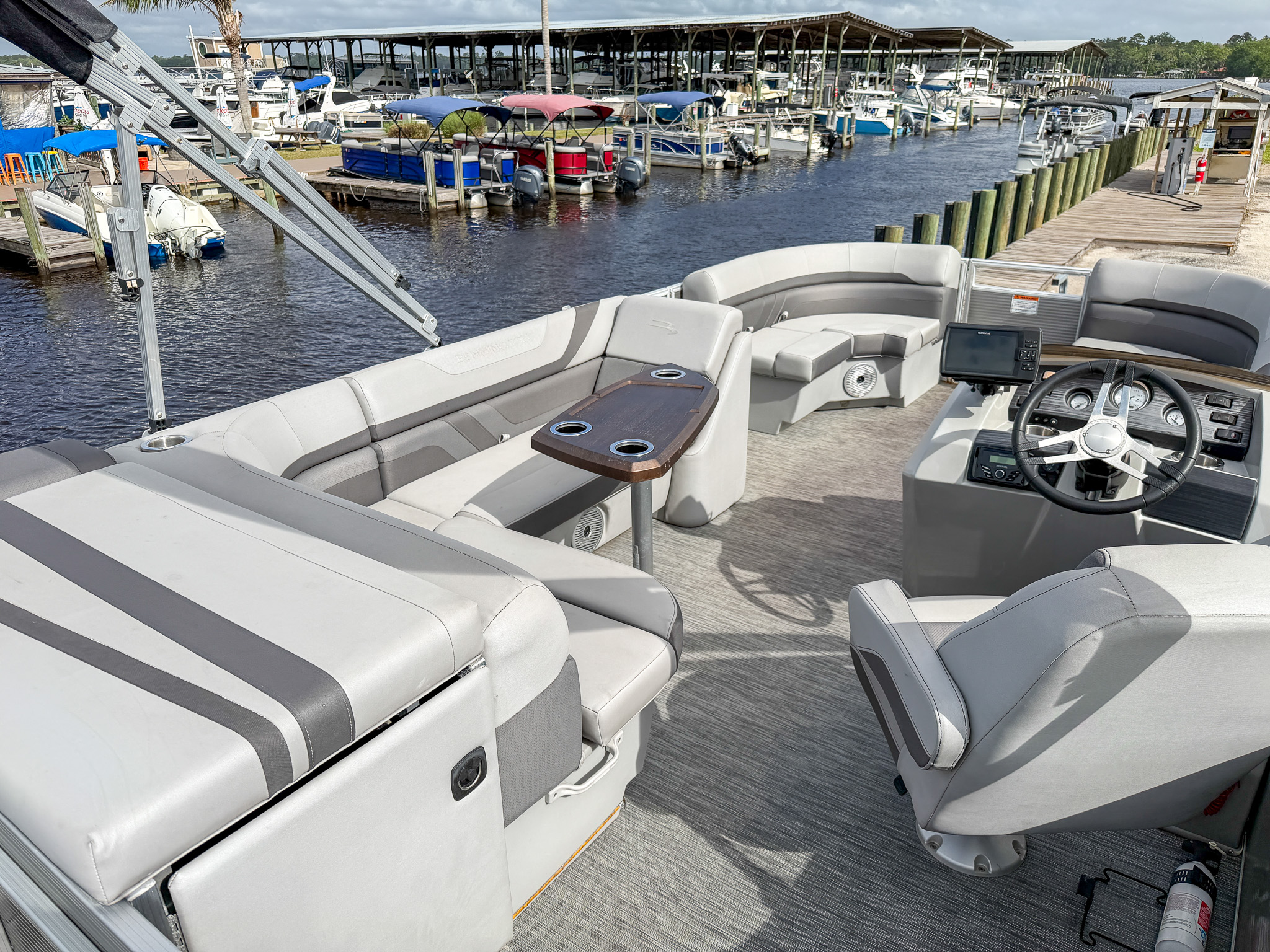 Easygoing, versatile, and built for making the most of a day on the water, the Bennington 20SLX hits that sweet spot for families and friends who want comfort without complication. At just over 20 feet with a wide 8 ft 6 in beam, it feels open and inviting the moment you step aboard, with a layout designed for lounging, cruising, and catching up between stops.