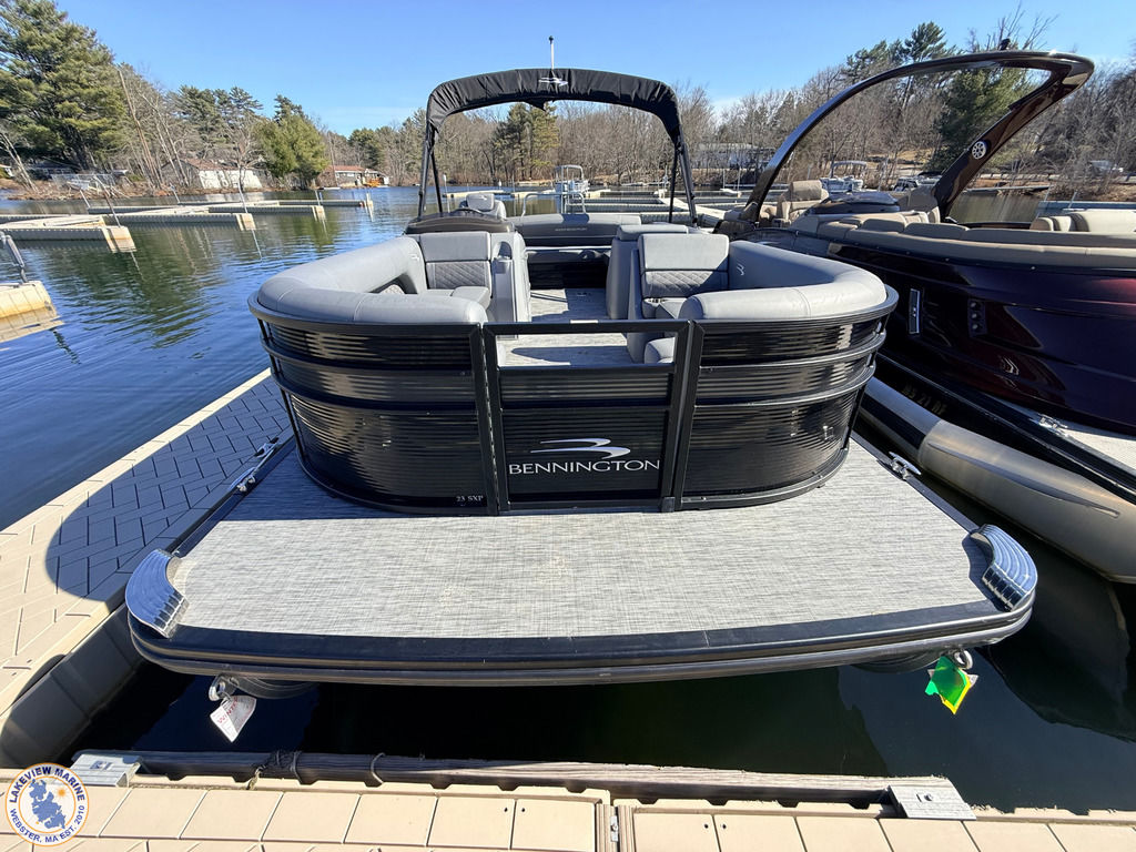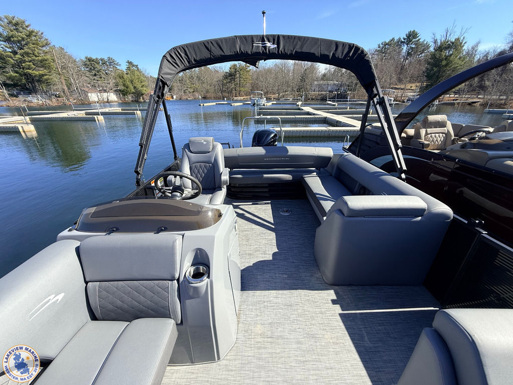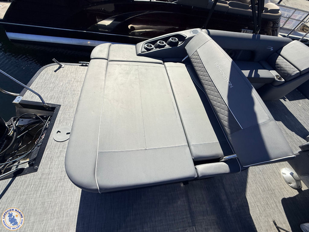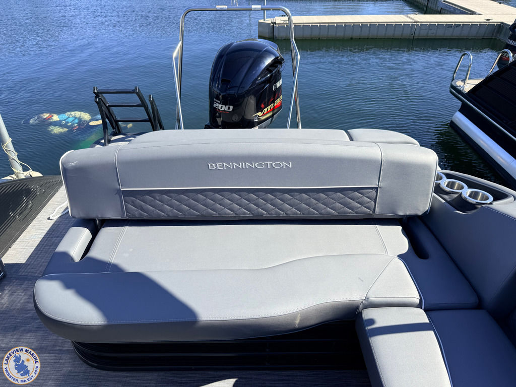 This 23' Bennington Tritoon powered by the ultra-reliable Yamaha 200hp Outboard is in excellent condition and delivers strong performance with a smooth, stable ride. Boat has been serviced and stored by our team since 2020 and when not in use it was kept on a boat lift, helping protect the pontoons and maintain its overall condition. Features include the popular Swingback Floorplan, Blackout Package, Bow Filler Seat, Kenwood Subwoofer, Upgraded Stainless-Steel Docking Lights, Power Assist Steering, Extended Aft Deck to maximize deck space without sacrificing interior seating, 2 Removable Tables, Lighted Bimini Top and Comfortable Seating for up to 12 Passengers! Offering plenty of space for family and friends, this Tritoon is ideal for spending full days on the water!