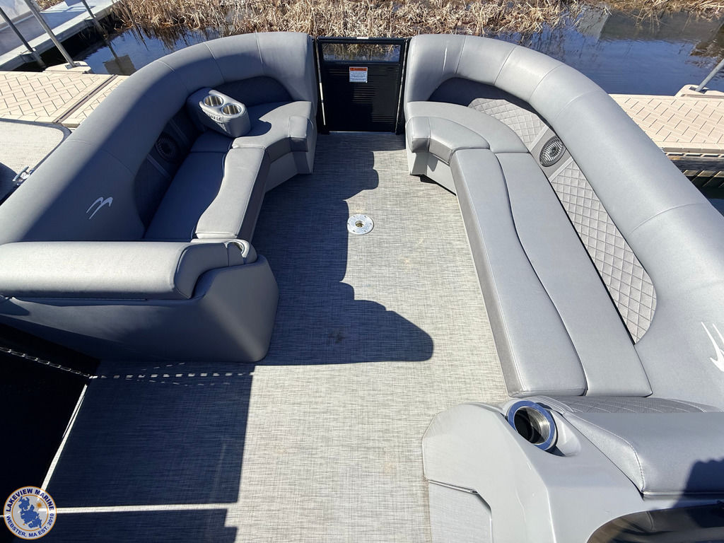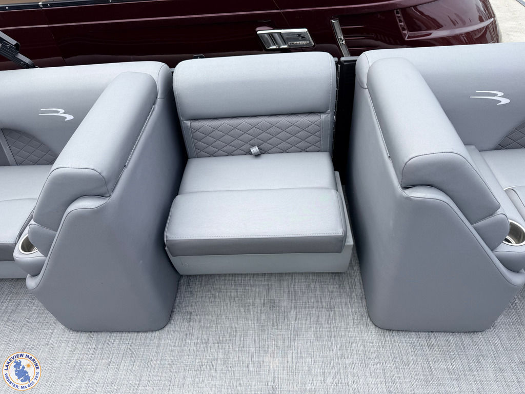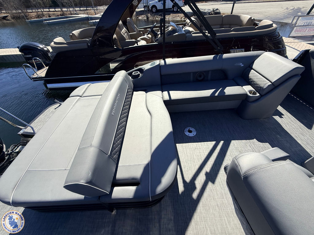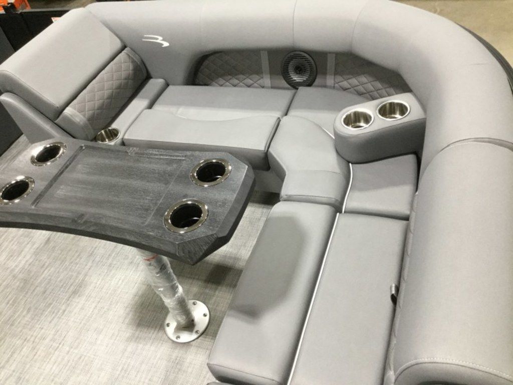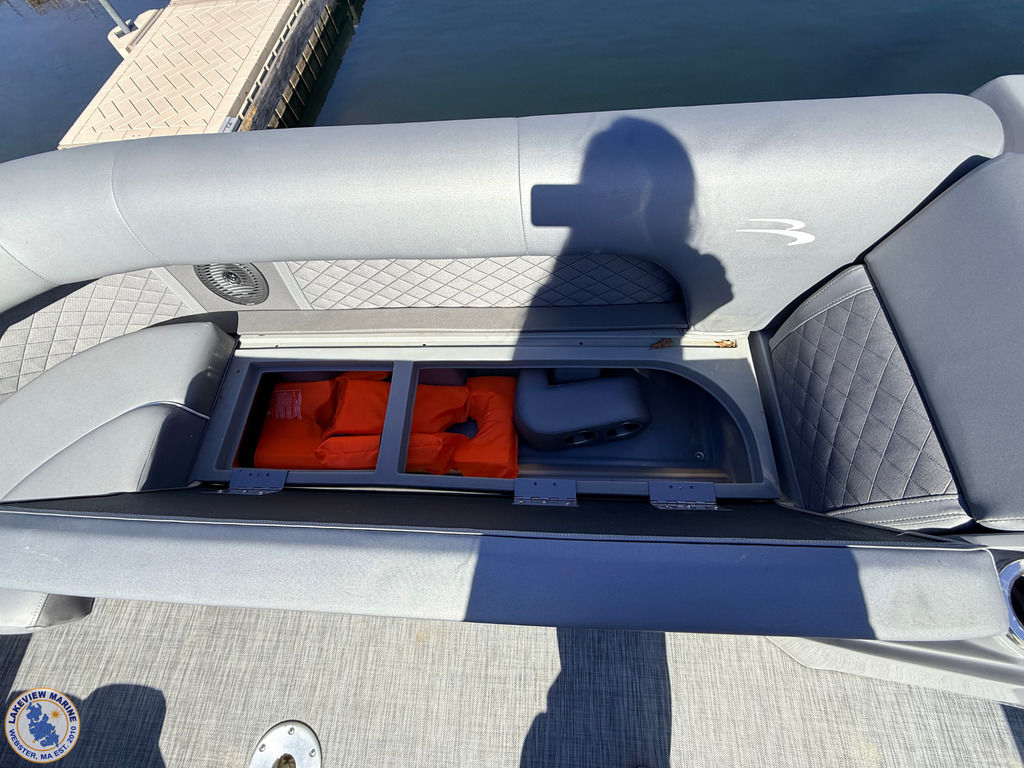This 23' Bennington Tritoon powered by the ultra-reliable Yamaha 200hp Outboard is in excellent condition and delivers strong performance with a smooth, stable ride. Boat has been serviced and stored by our team since 2020 and when not in use it was kept on a boat lift, helping protect the pontoons and maintain its overall condition. Features include the popular Swingback Floorplan, Blackout Package, Bow Filler Seat, Kenwood Subwoofer, Upgraded Stainless-Steel Docking Lights, Power Assist Steering, Extended Aft Deck to maximize deck space without sacrificing interior seating, 2 Removable Tables, Lighted Bimini Top and Comfortable Seating for up to 12 Passengers! Offering plenty of space for family and friends, this Tritoon is ideal for spending full days on the water!
