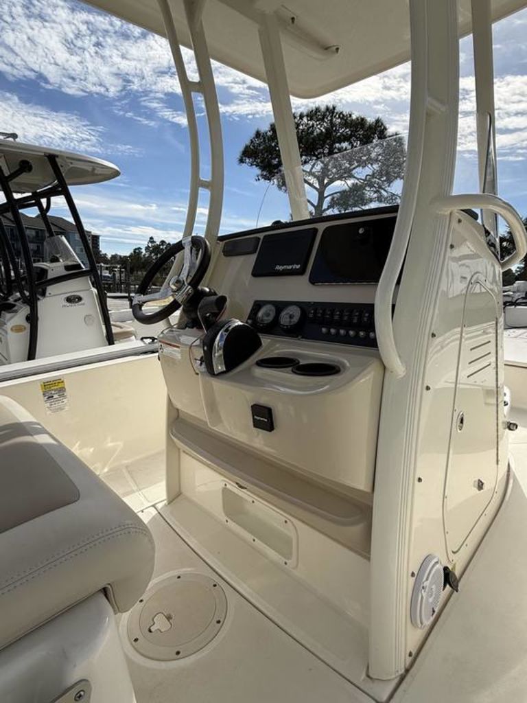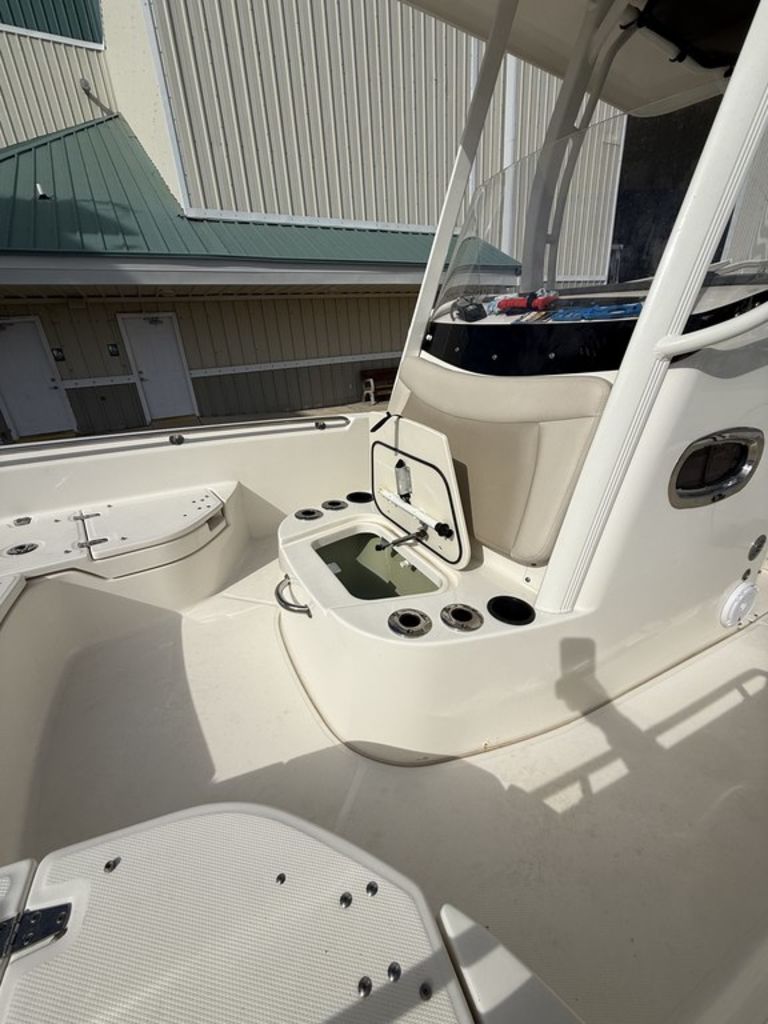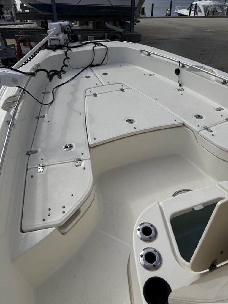 - Available reversible pilot seat with livewell, raw-water washdown and stainless-steel rod holders, delivers big angling capability.
