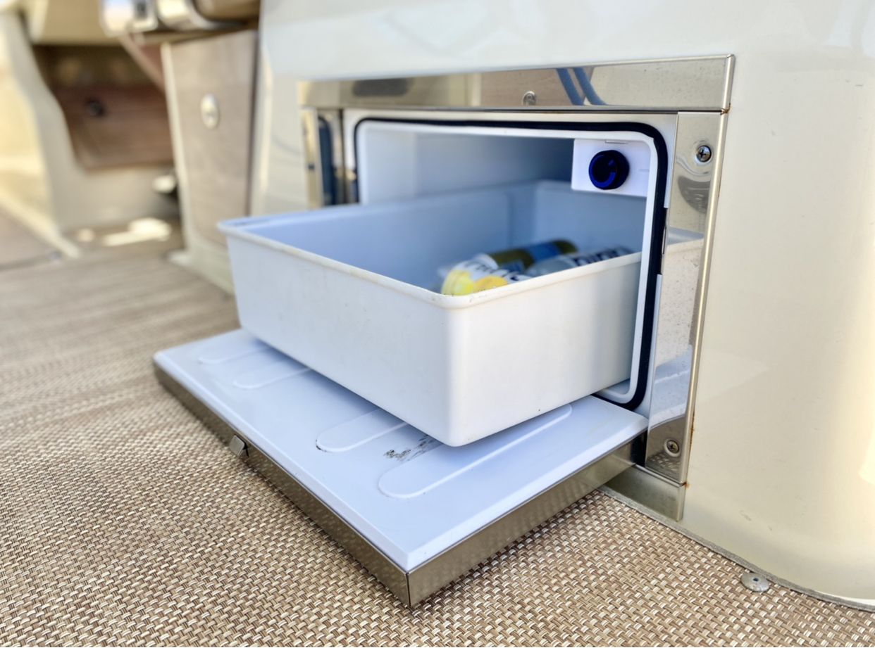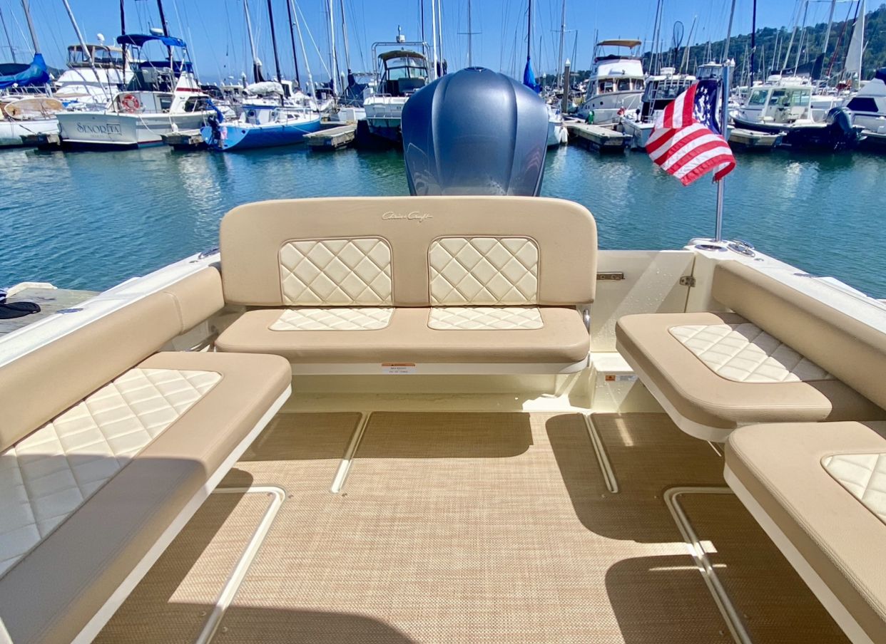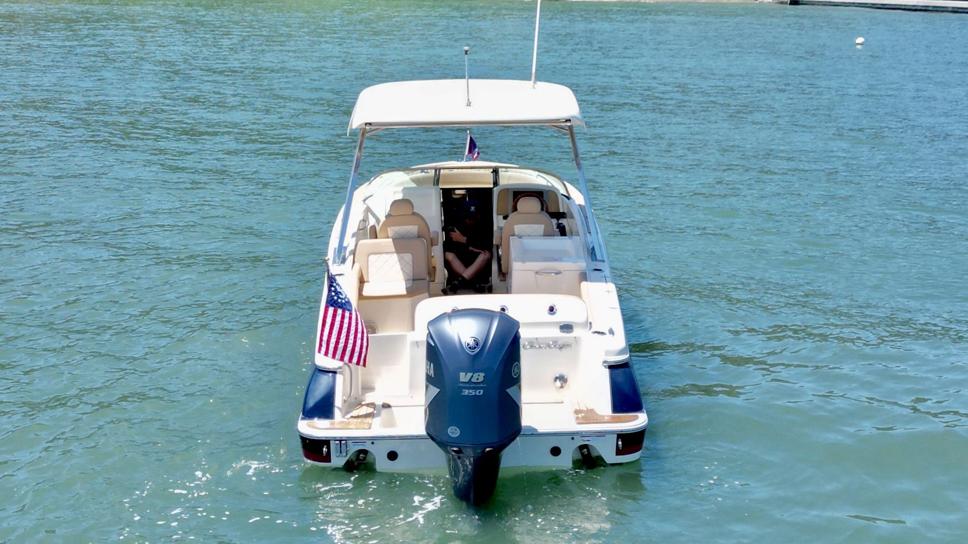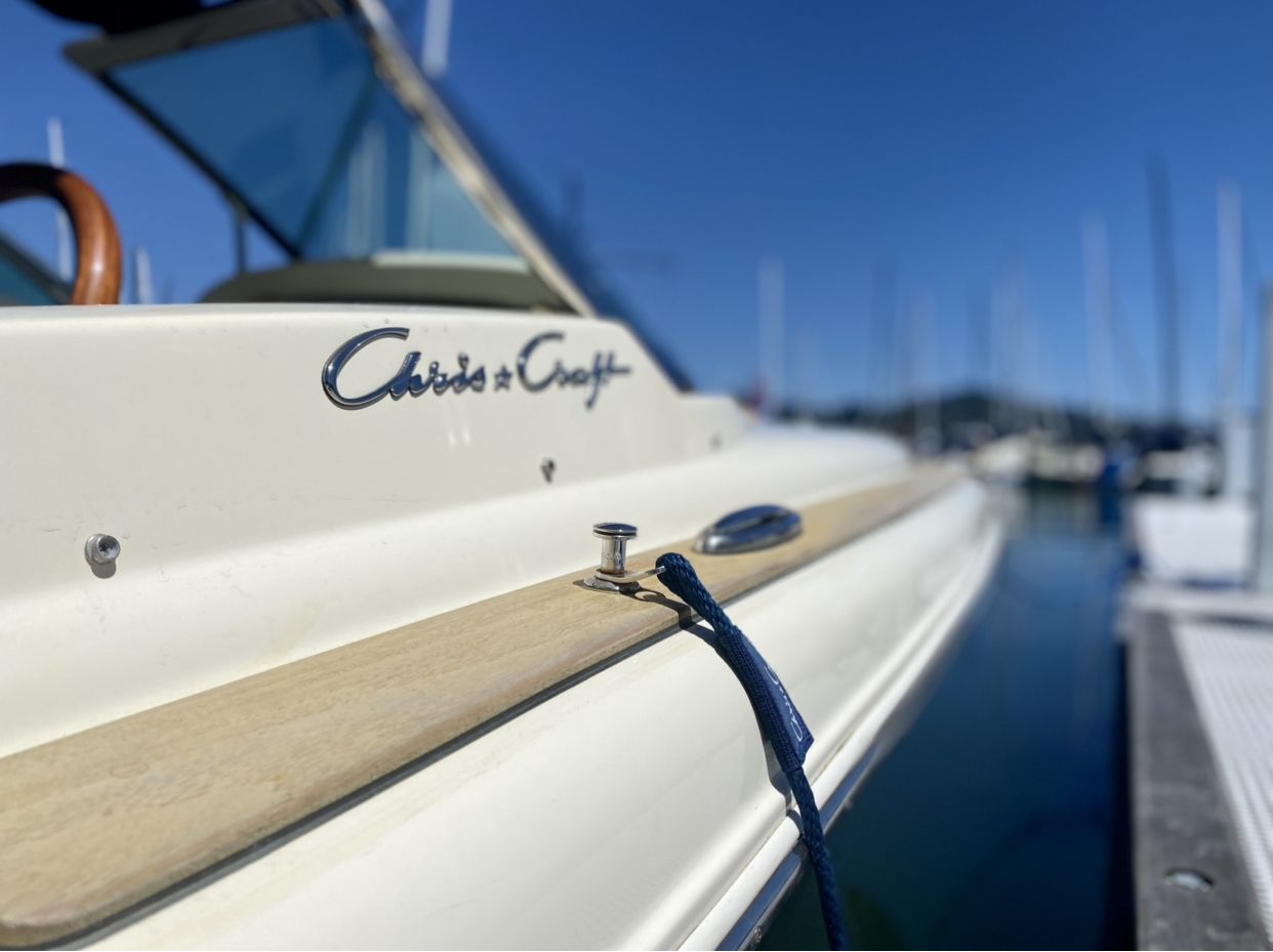 This beautiful red, white & blue Calypso 26 is stored out of the water and includes a custom