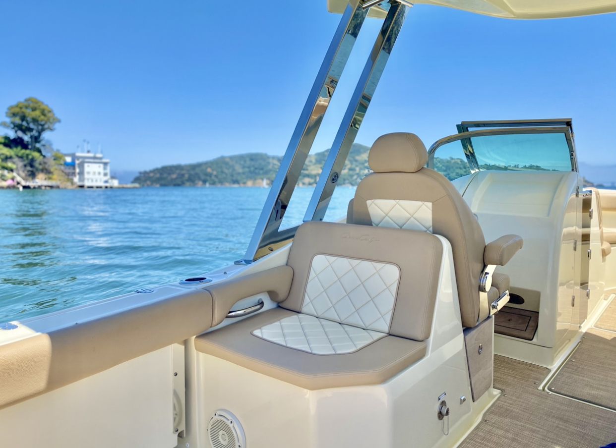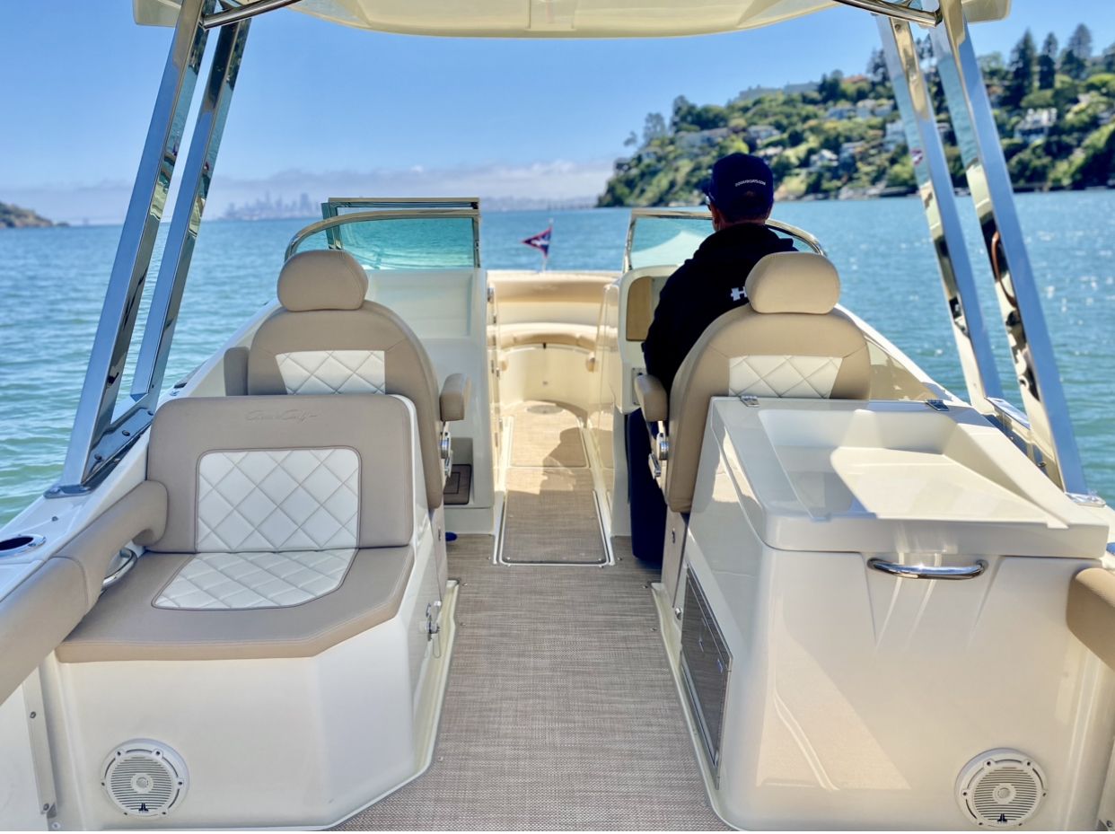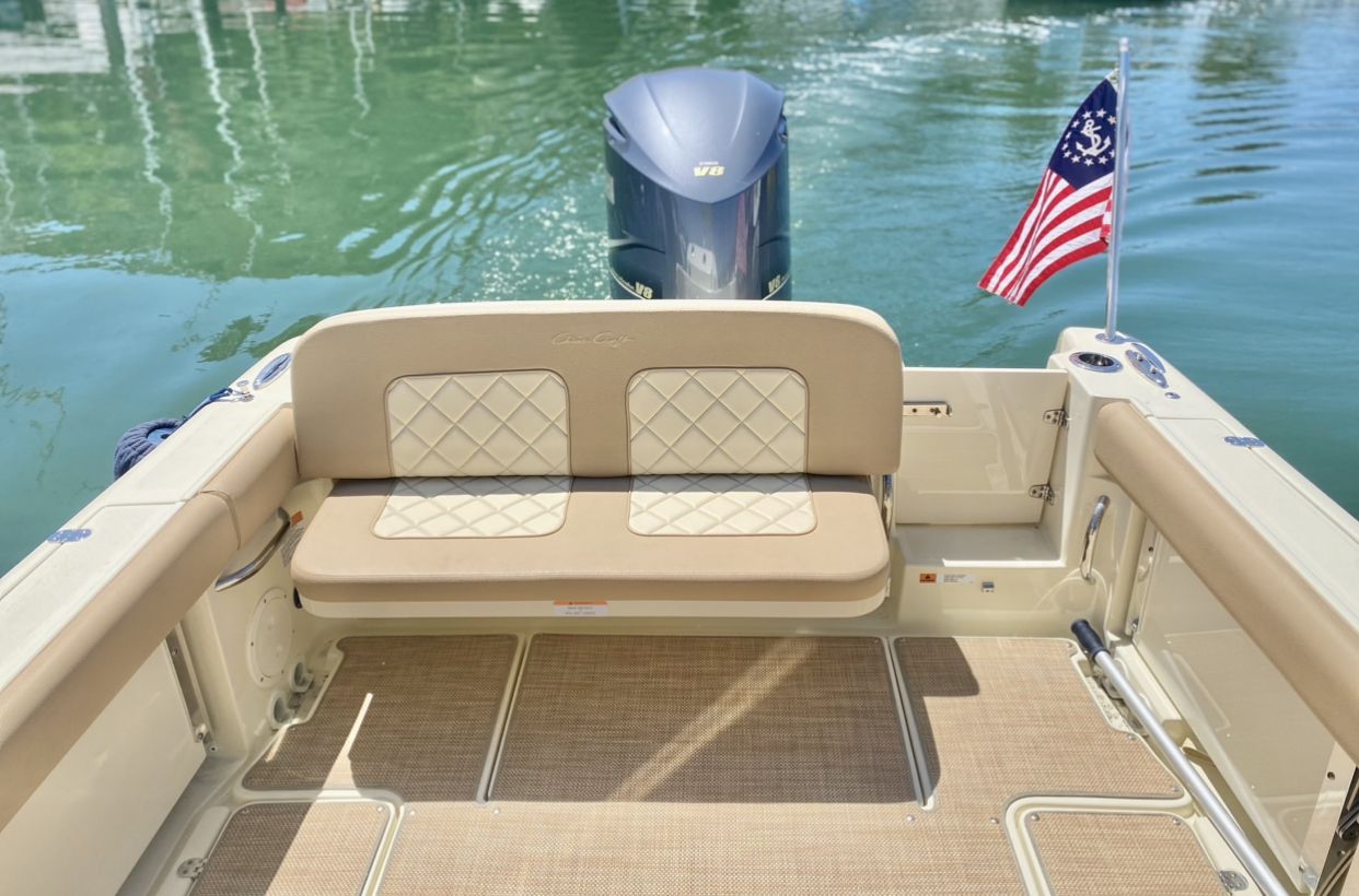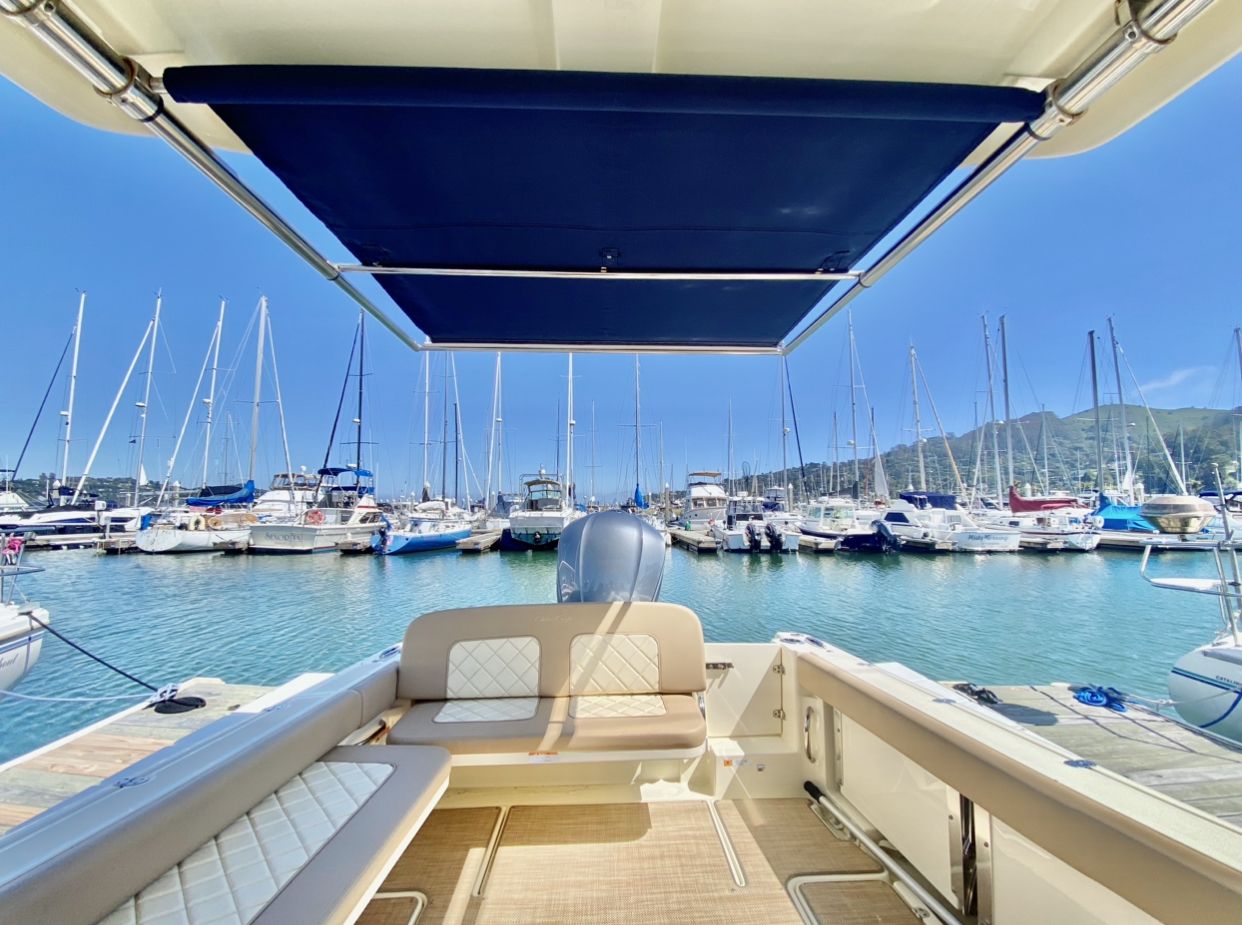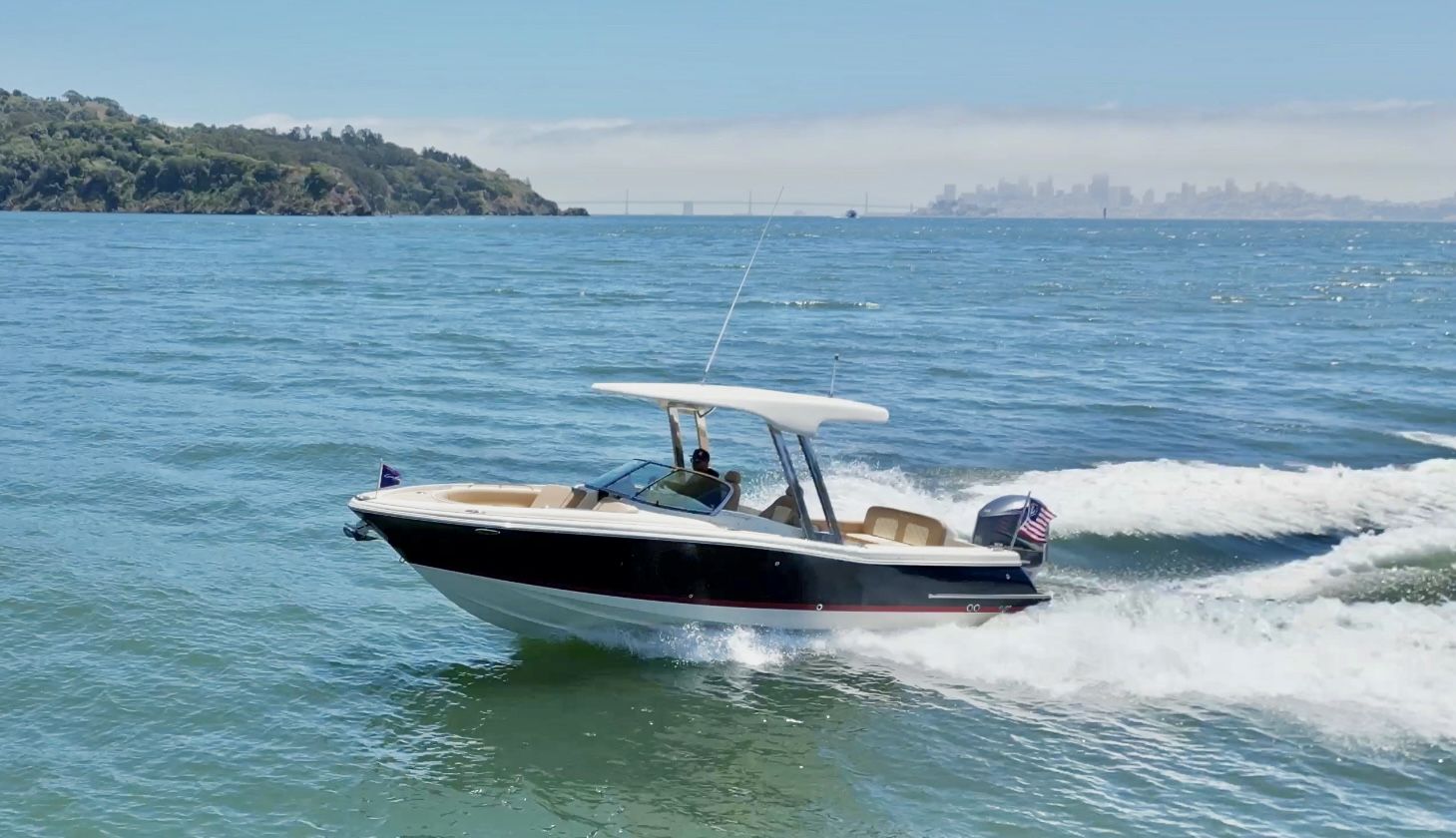 This beautiful red, white & blue Calypso 26 is stored out of the water and includes a custom