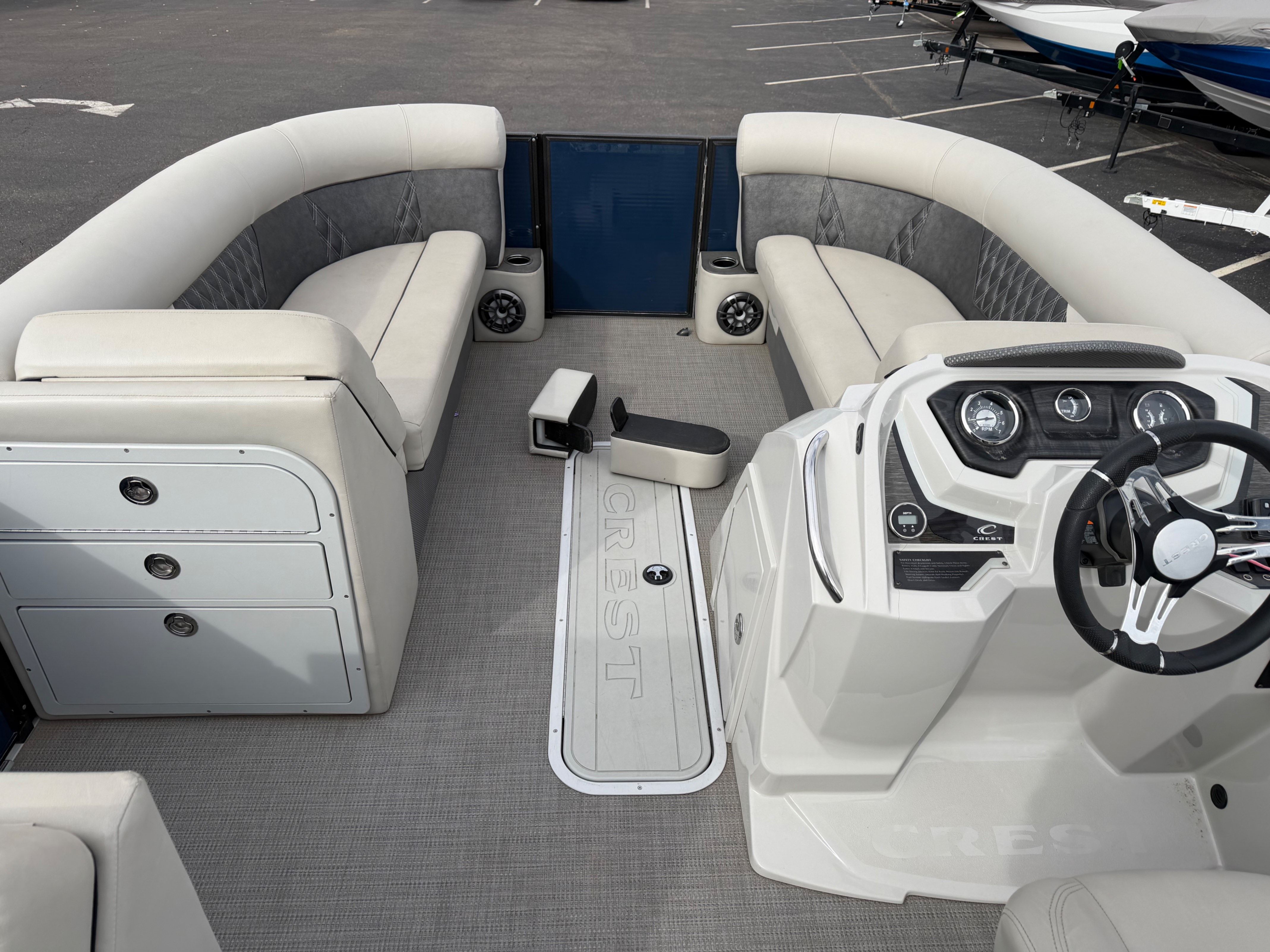 About The 2020 Crest 220 SLS CP Offering an exquisite blend of style, performance and comfort, the 2020 Crest 220 SLS CP is an elite model in the lineup of Crest pontoon boats. This boat is designed with unwavering attention to detail and emphasis on comfort and style, making it an unparalleled option for those seeking the best on-the-water experiences. Design and Style The design of the 2020 Crest 220 SLS CP is strikingly elegant. Equipped with premium upholstery and extended deck layouts, it exudes a luxurious appeal. It sports sleek railings and trim along with a fiberglass helm that adds to its style quotient. Comfort and Performance Never compromising on its comfort features, the boat offers a spacious layout optimizing every inch for entertainment and relaxation. Plush seating, inclusive of captain’s cooled cup holder and recliner, ensures ultimate comfort throughout the voyage. In terms of performance, the 2020 Crest 220 SLS CP possesses a powerful outboard motor, ensuring smooth navigation on water bodies. The CP3 Performance package enhances fuel efficiency and increases top speed, offering a thrilling boating experience. Excellent Features It comes with a litany of special features like premium sound system, LED navigation and docking lights, movable cup holders, built-in coolers, as well as options for water sports like skiing, tube towing. For added convenience, it also sports a fully-loaded helm, powder coated deck trim and stainless-steel hardware making the 2020 Crest 220 SLS CP a complete package of efficiency, luxury, and fun.