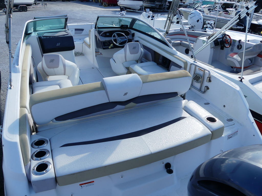 The HD 220 OB is the only Deck boat available that raises the bar on everything. The interior is furnished with gorgeous upholstery and plush bucket seats that are designed with so much padding you could take an endless ride. What could be better?
