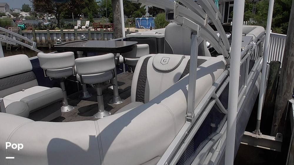 Equipped with ample seating capacity for sixteen individuals, this Tritoon is ideal for accommodating large groups, ensuring a comfortable and enjoyable experience for all.