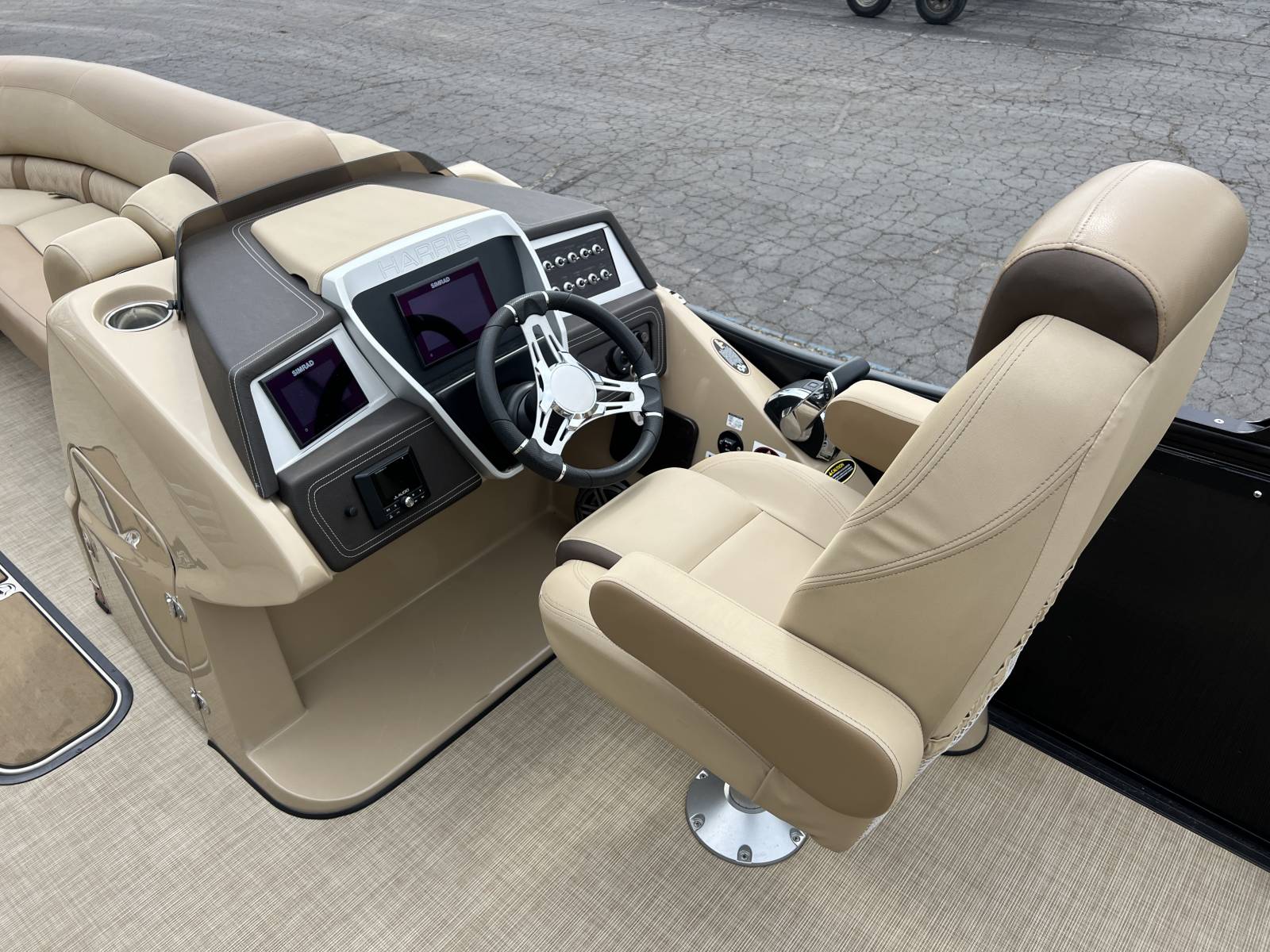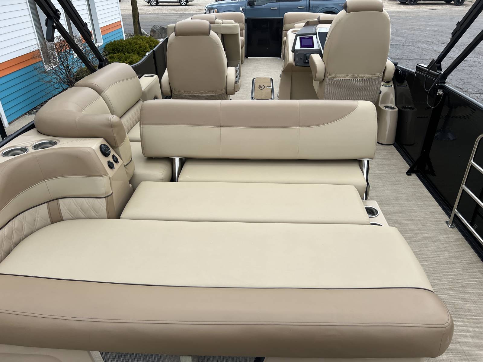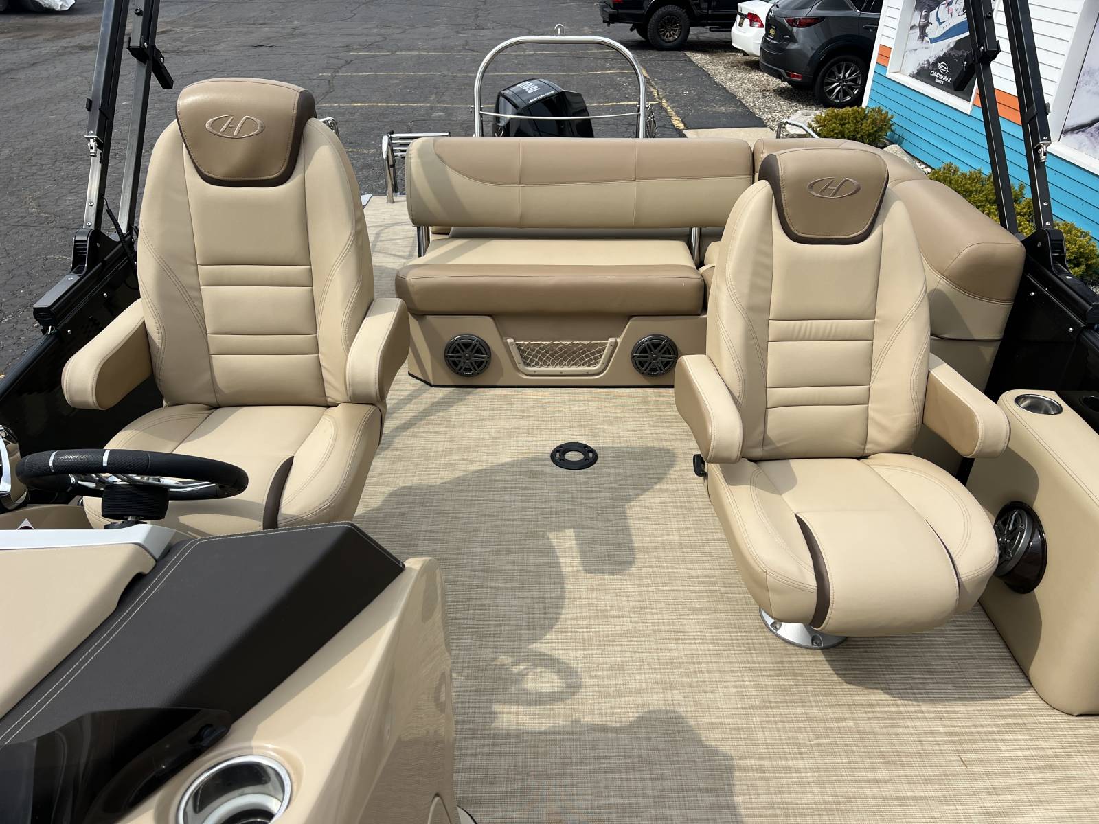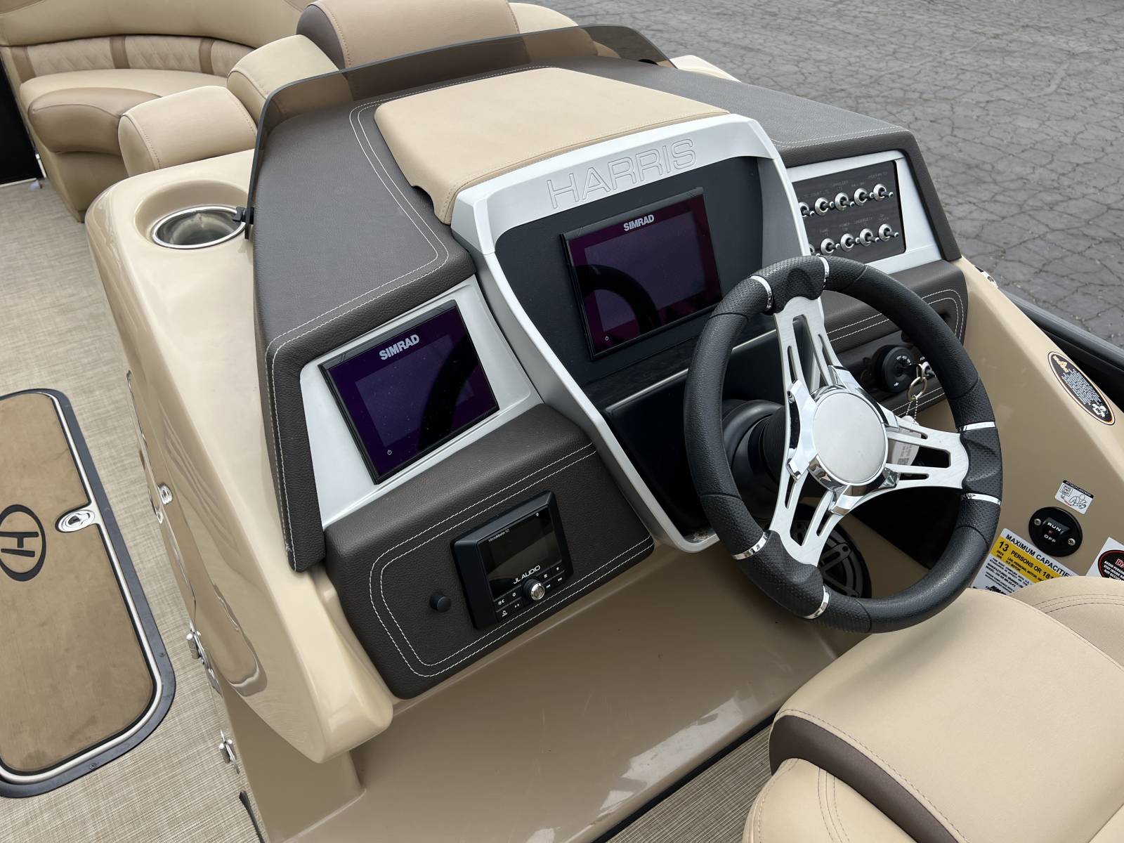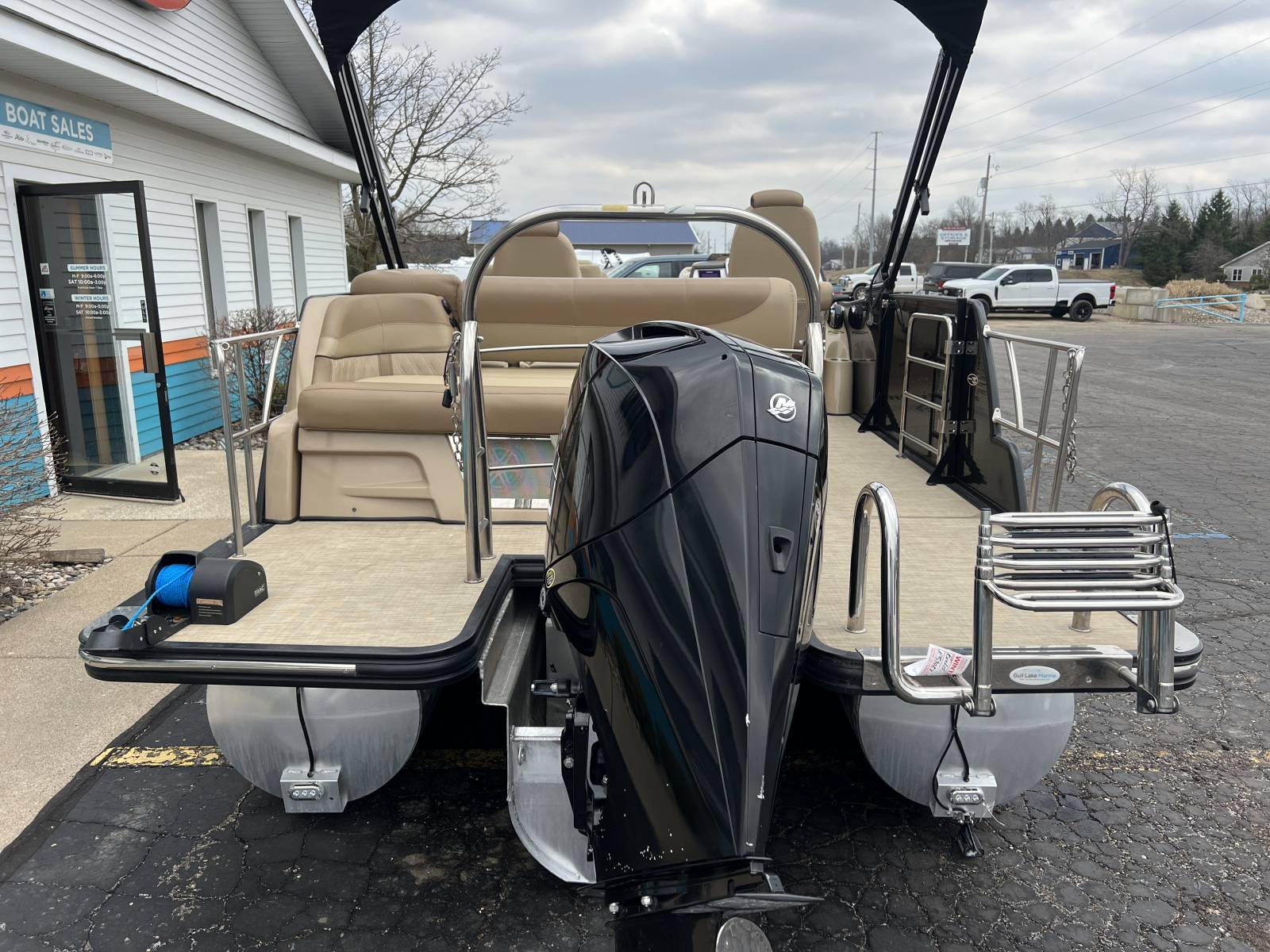 This tritoon won’t last with all these options!Power Bimini TopMercury 225hp Engine (214hrs)Vantage Toon GuardSwingback FloorplanBlackout PackageSeagrass FlooringSafety RailDual Simrad ScreensJL Audo In Tube StorageContact Gull Lake Marine today for more information. Thanks for viewing!