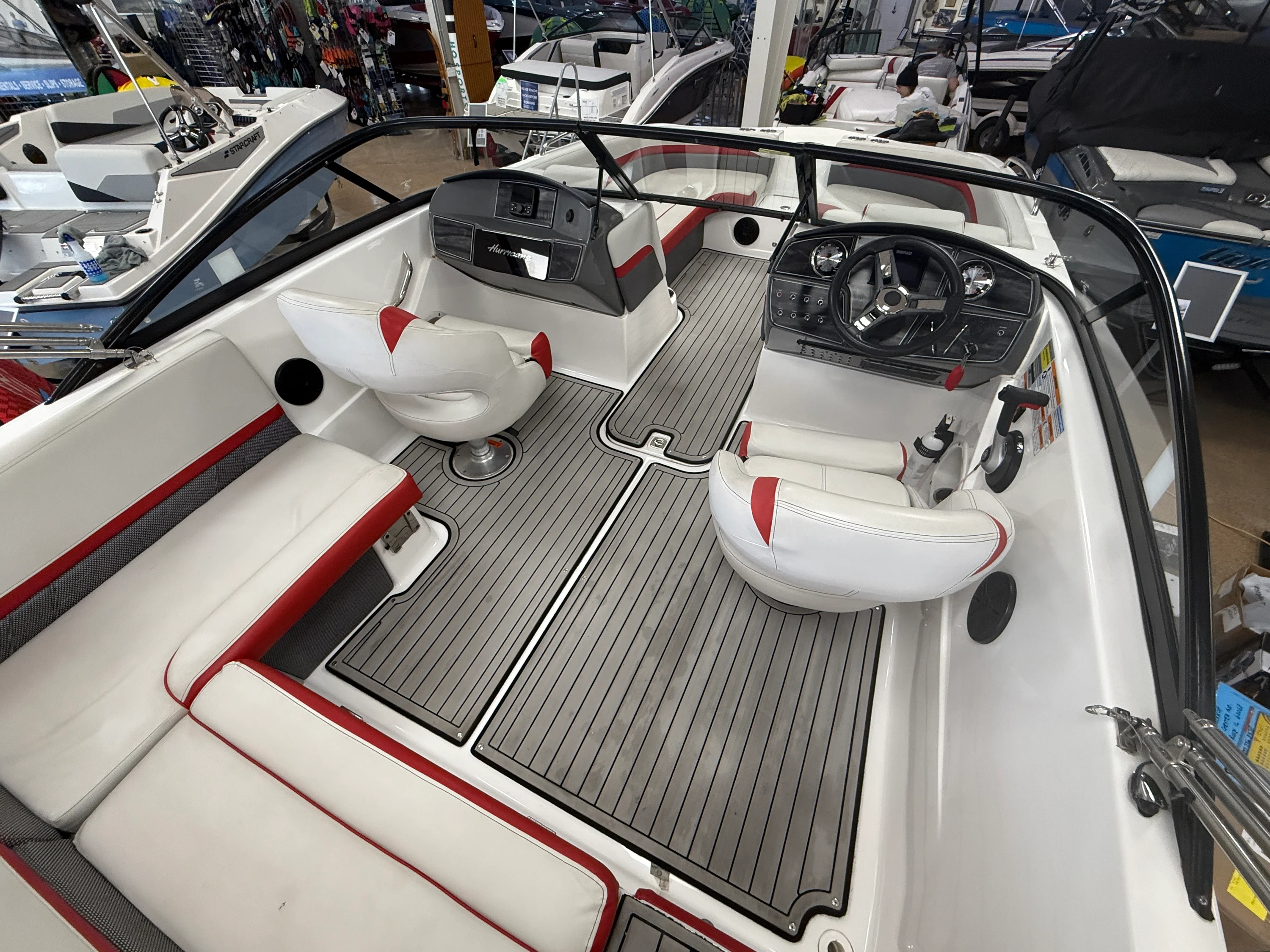 Equipped with a single 200HP Mercruiser engine, this boat offers remarkable performance and agility. Whether you're cruising at top speeds or enjoying a leisurely glide, the Hurricane SD 217 delivers an exhilarating experience, making every trip an adventure.