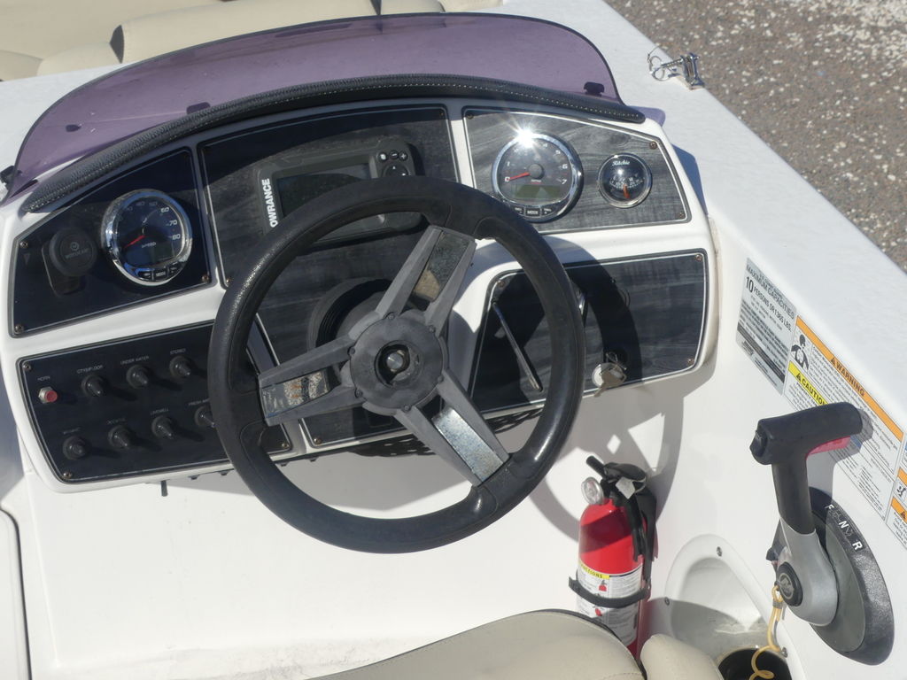 Easy To NavigateThe sporty design of our helm allows you to take control of the water with confidence thanks to its intuitive design. Distinctive red-needle sweep gauges keep tabs on performance; premium center-mounted fish finder makes every cast count and convenient recessed phone holder ensures you’re always connected.