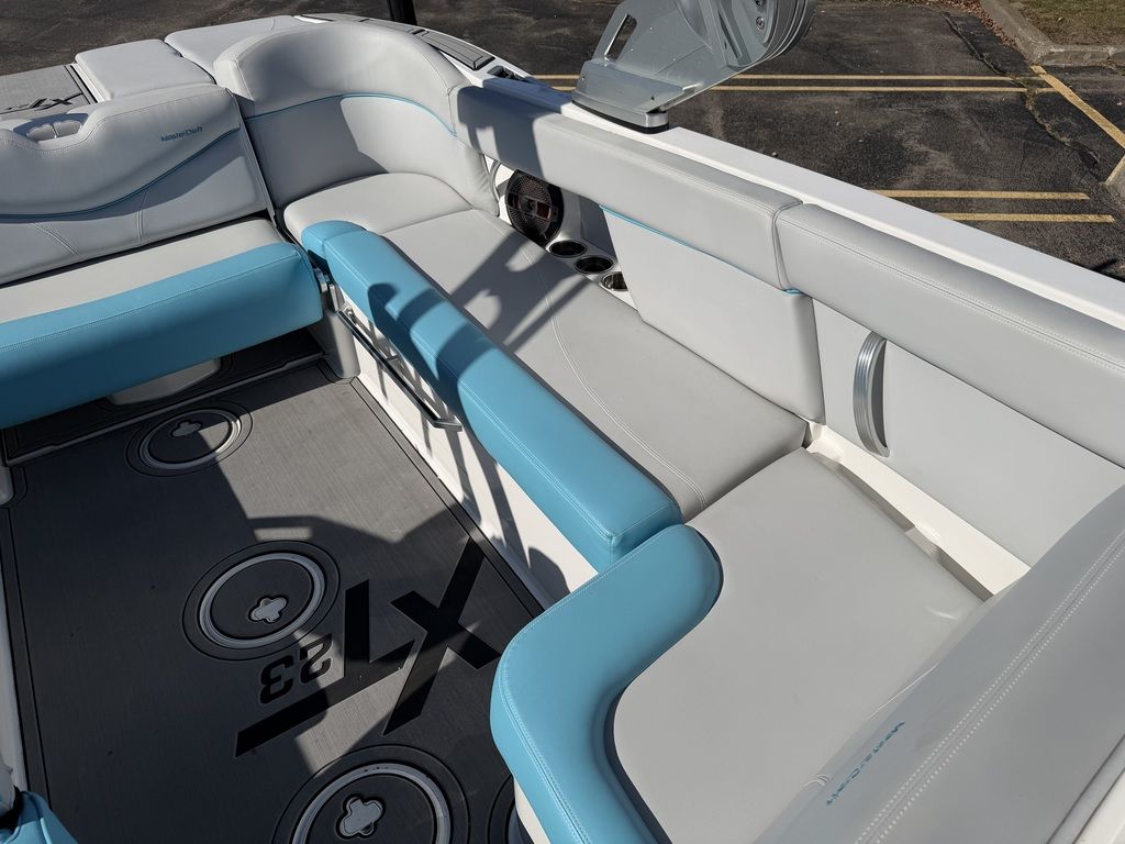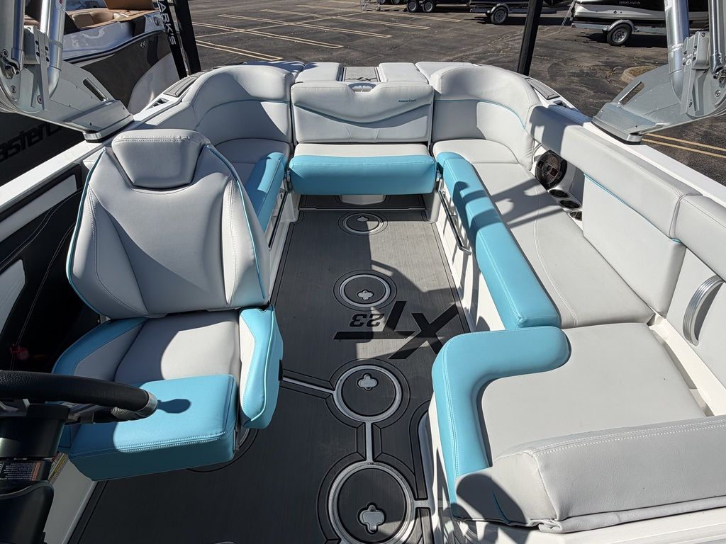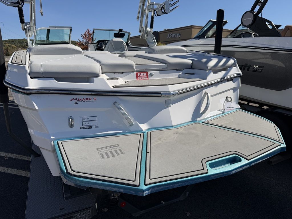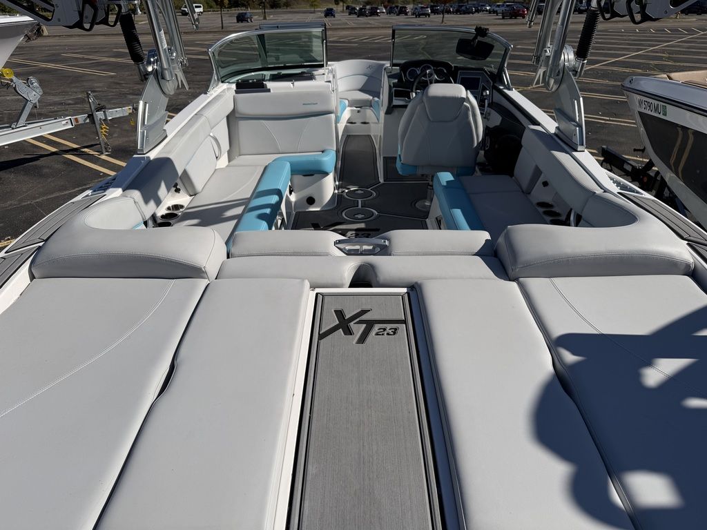 Summer means it's time to go off and fly the fun flag. In the XT23, you've got room for 16 and a plethora of plush seating, including the awesome flip-up transom seats. DECKadence custom flooring runs bow to stern, and overhead your Klipsch speakers crank concert quality sound atop the ZFT4 tower. The action behind the boat is nonstop thanks to the Gen 2 Surf System and a robust 2600 pounds of ballast.