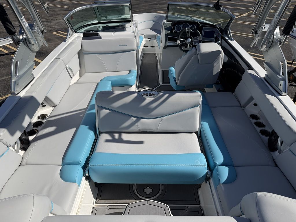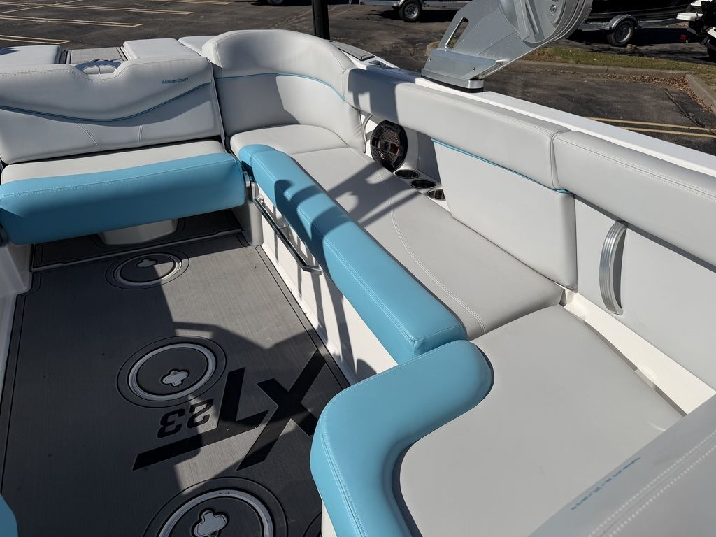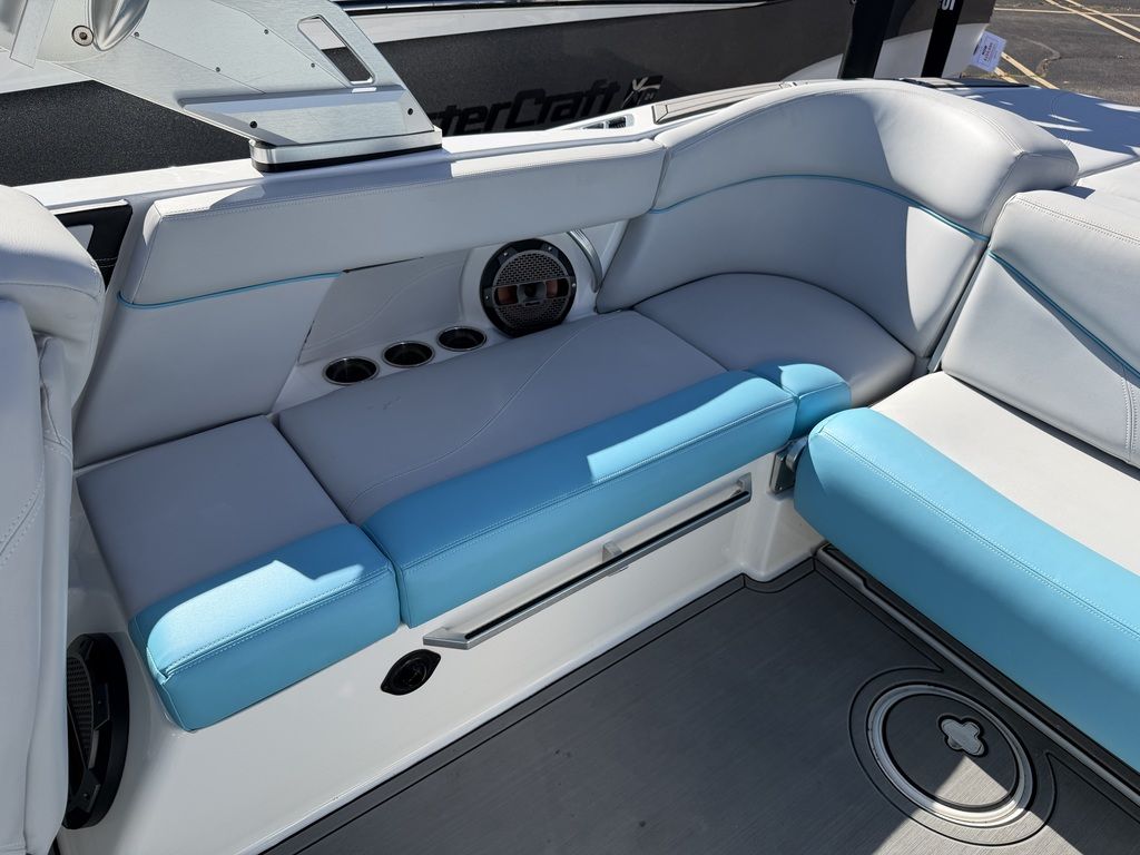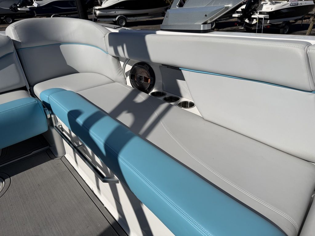 Summer means it's time to go off and fly the fun flag. In the XT23, you've got room for 16 and a plethora of plush seating, including the awesome flip-up transom seats. DECKadence custom flooring runs bow to stern, and overhead your Klipsch speakers crank concert quality sound atop the ZFT4 tower. The action behind the boat is nonstop thanks to the Gen 2 Surf System and a robust 2600 pounds of ballast.
