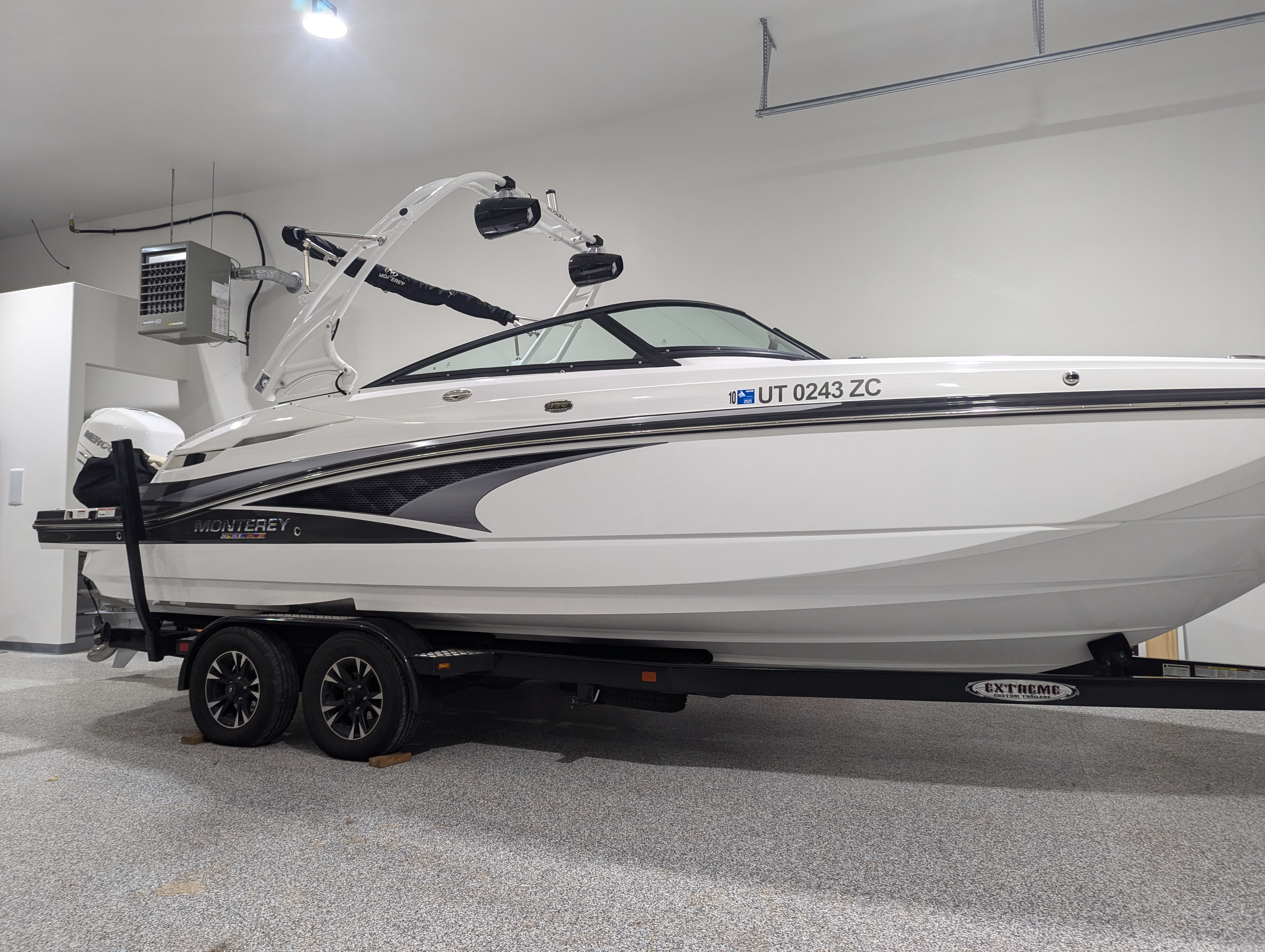 Beautiful 2020 Monterey M-65 in immaculate condition. I am the original owner. This was Monterey's boat show boat back in 2020 so it's LOADED with just about every option available. It's been stored in my climate controlled garage since day 1 and has been meticulously maintained, well ahead of schedule on everything. Custom trailer as well. Looks and runs flawless.