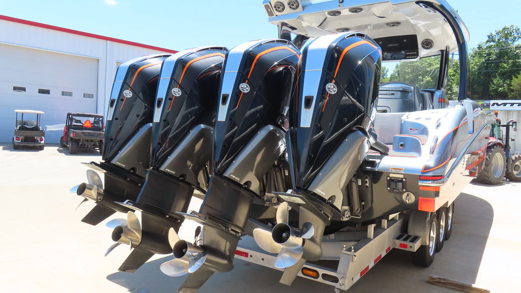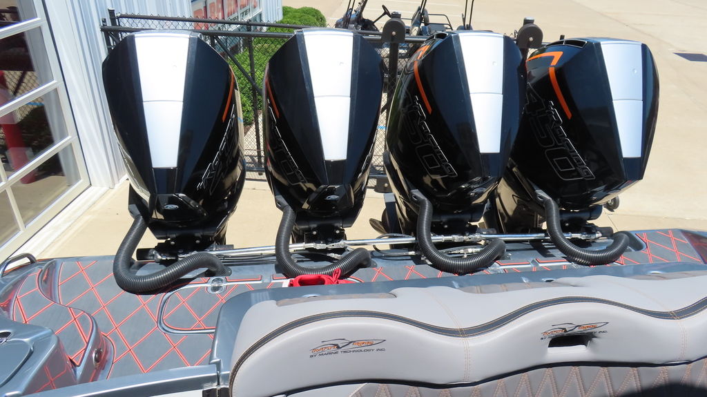 2020 MTI-V 42 with 390 hours on Quad Mercury Racing 450Rs , Very Nicely Optioned Boat with key options such as , Huge JL Audio Stereo with Wing T-top speakers, Aluminum Cleats, Chill plate in the Bar with Clear doors and Bottle Holders, Under Water Lighting, Cabin Air Conditioning w/ Dash Blowers, Triple Garmin Screens at the Helm, Bow Thruster, Anchor Windlass, Seadek Flooring, Cabin Sink, CTS Custom Aluminum Trailer Included.