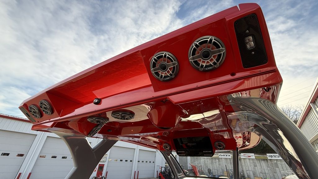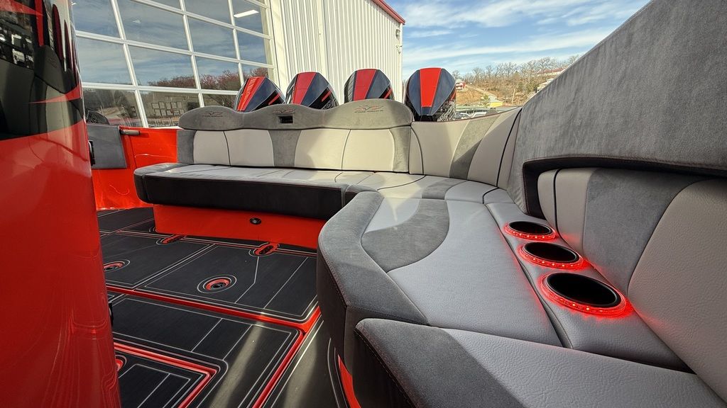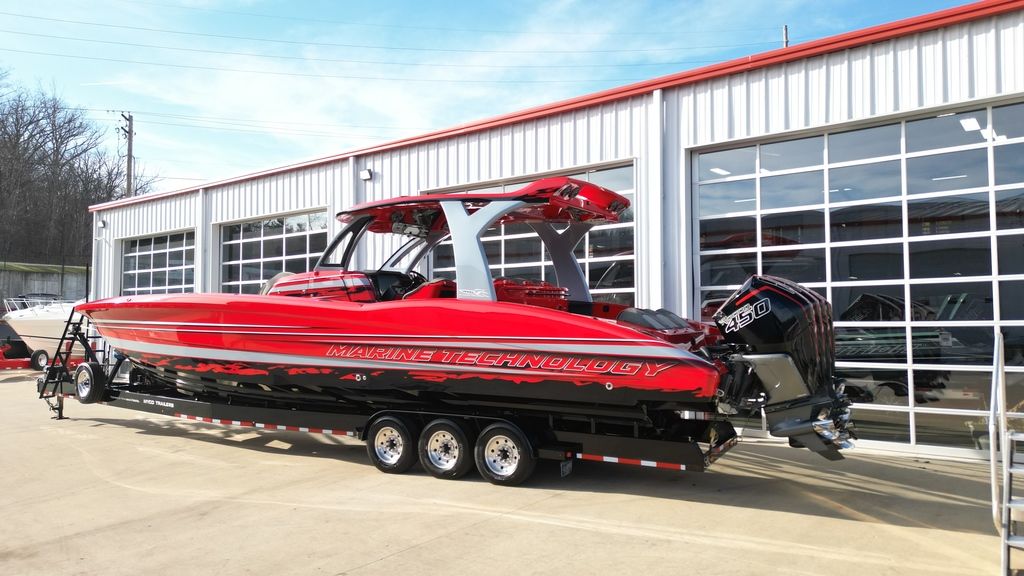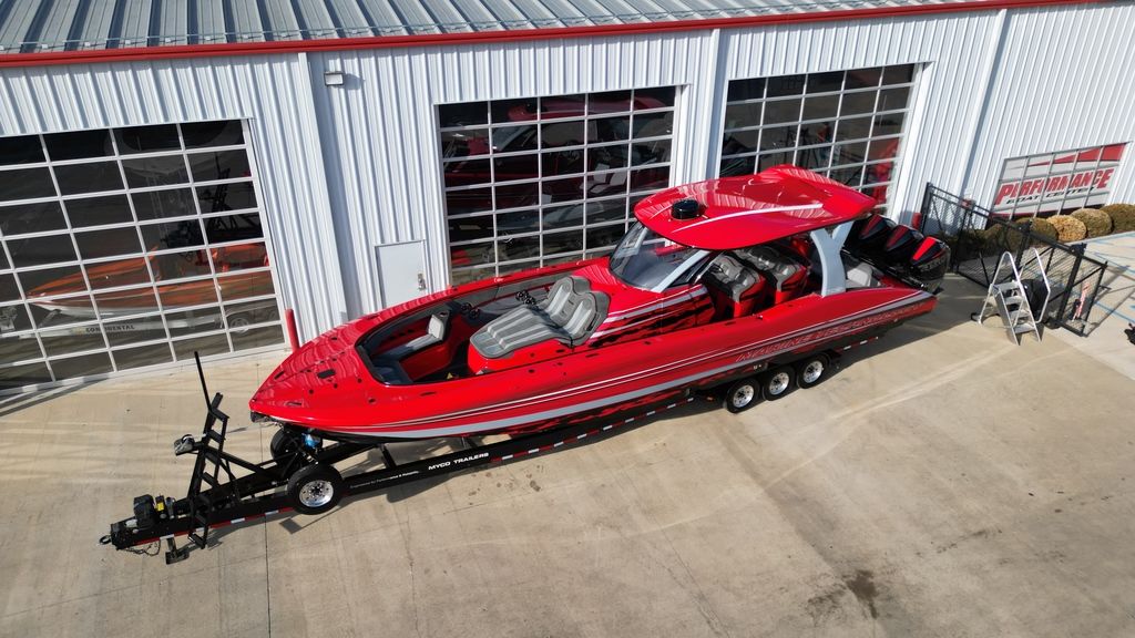 2020 MTI-V 42 with 333 hours on Quad Mercury Racing 450Rs, Rub Rail delete, (3) Garmin GPS at the helm, Radar, Mercury Vessel veiw, Stage 3 Fusion/ JL Audio Stereo, Wing Speakers, Pop-up Bow Speakers, Pop-up bow FLIR, Aluminum Cleats, Fender Clips, Alcantera Interior, Black-out hardware, Chill plate in the Bar with Clear doors and Bottle Holders, Under Water Lighting, Cabin Air Conditioning w/ Dash Blowers, Cabin Sink, Pump out Head w/ Macerator, Bow Thruster, Anchor Windlass, Seadek Flooring, Cabin Sink, MYCO Aluminum Trailer Included!