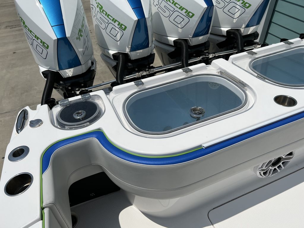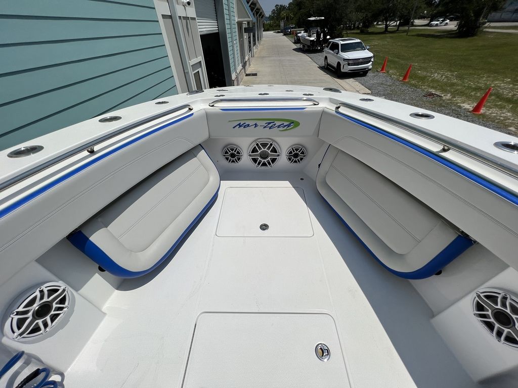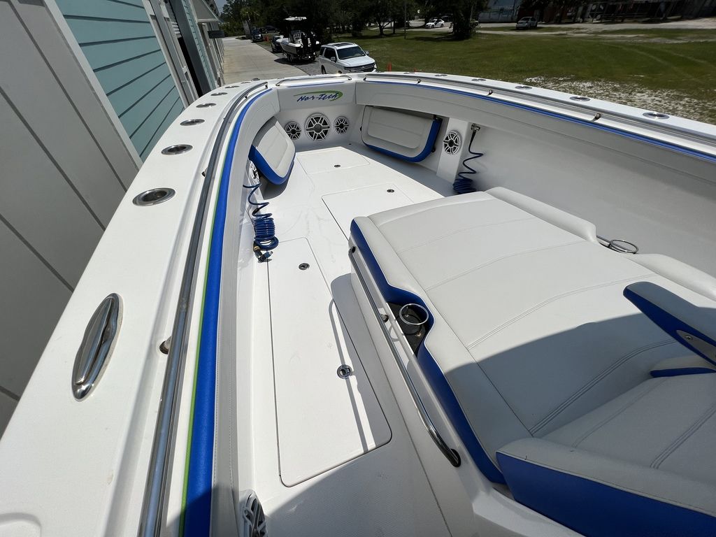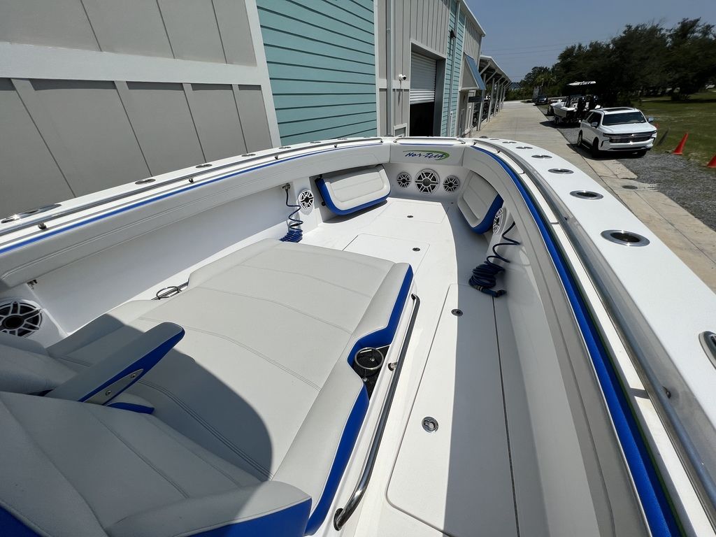 This 2020 Nor-Tech 392 Superfish comes powered by Quad Mercury 450Rs with just 135 hours! This boat features a uniqe custom paint job and has been very well maintained with low hours. Some of the installed options include Twin Garmin MFDs, Twin Garmin VHF Radios, Garmin Open Array Radar, FLIR Thermal Imaging, Fusion Stereo w/ Extreme JL Audio Speaker System, Dive Door, Twin Transom Live Wells, Transom Tuna Tubes, Leaning Post Tackle/Prep Station, (2) AFT Deck Fish Boxes, (2) Midship Fish Boxes, Step Down Head Area w/ Birth, XL Bow Lounge Seating, Flip Up Bow Seating, (4) Bow Deck Fish/Storage Boxes, (2) Raw Water Wash Downs, (2) Fresh Water Wash Downs, and more! A trailer is not included in the sale of this boat but one can be ordered upon request. www.grandermarine.com | 251-271-0166