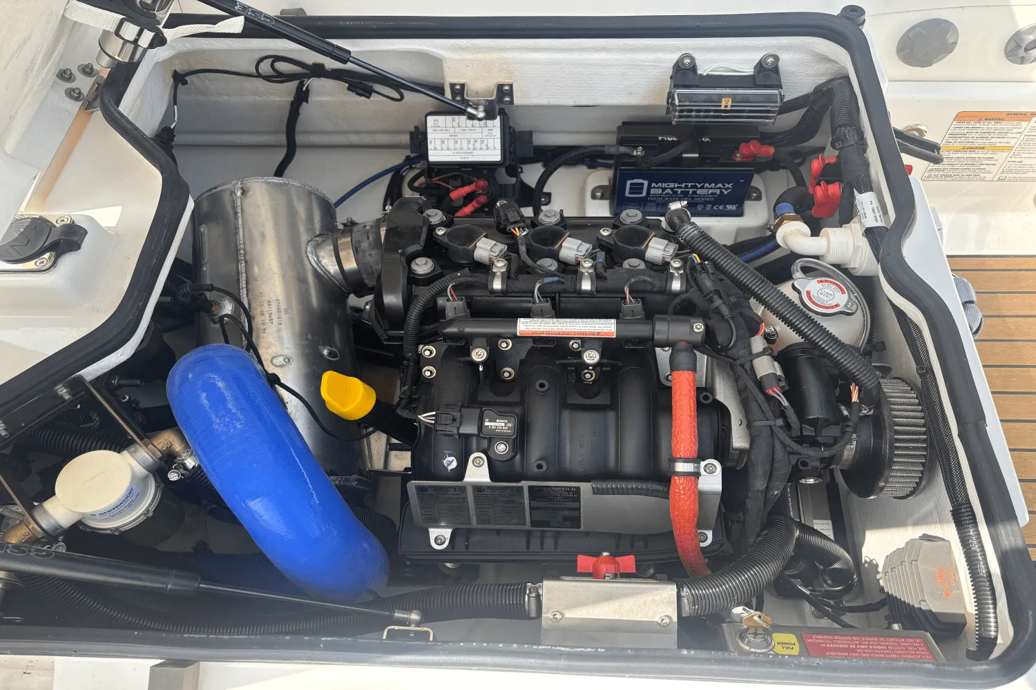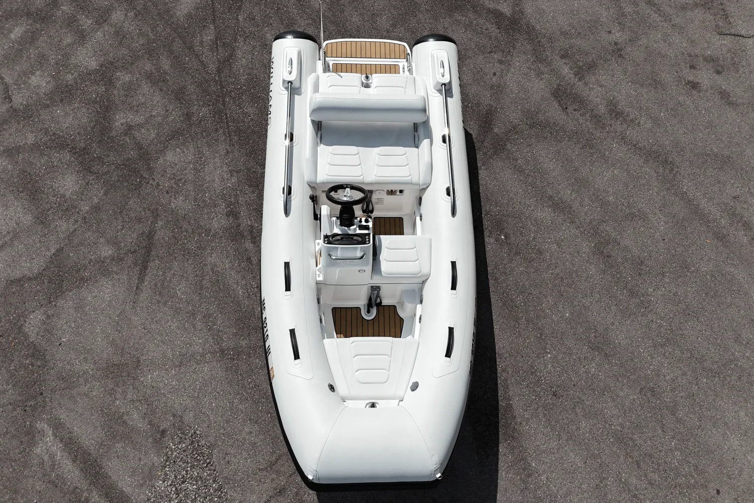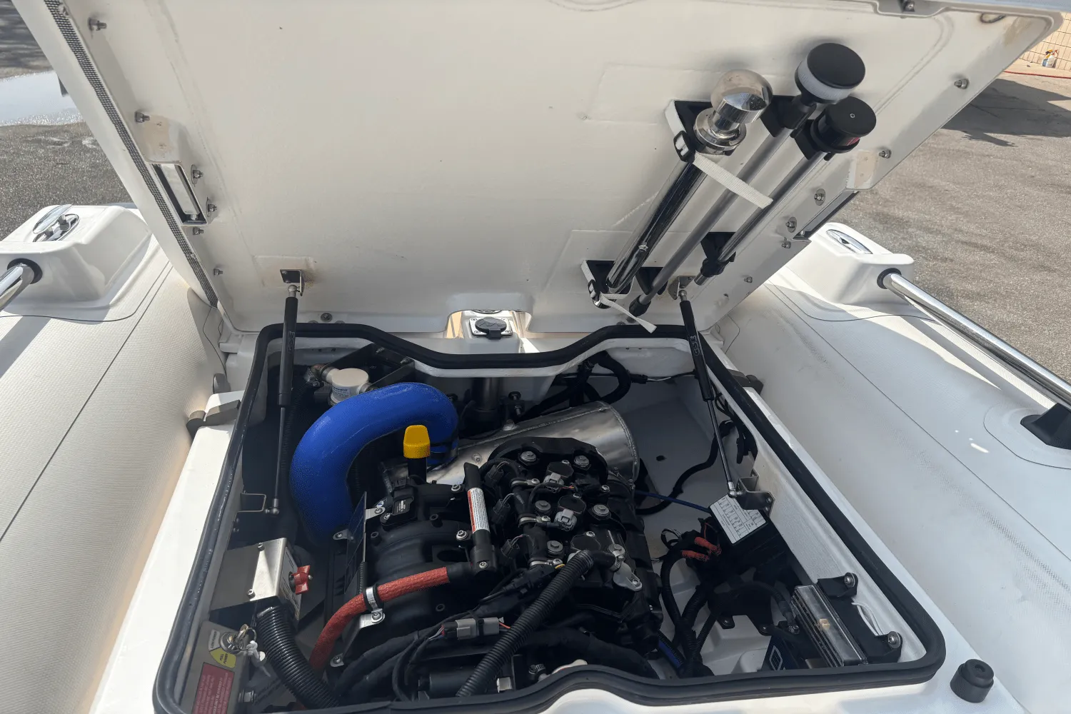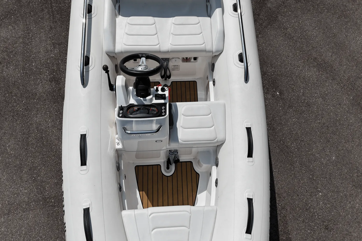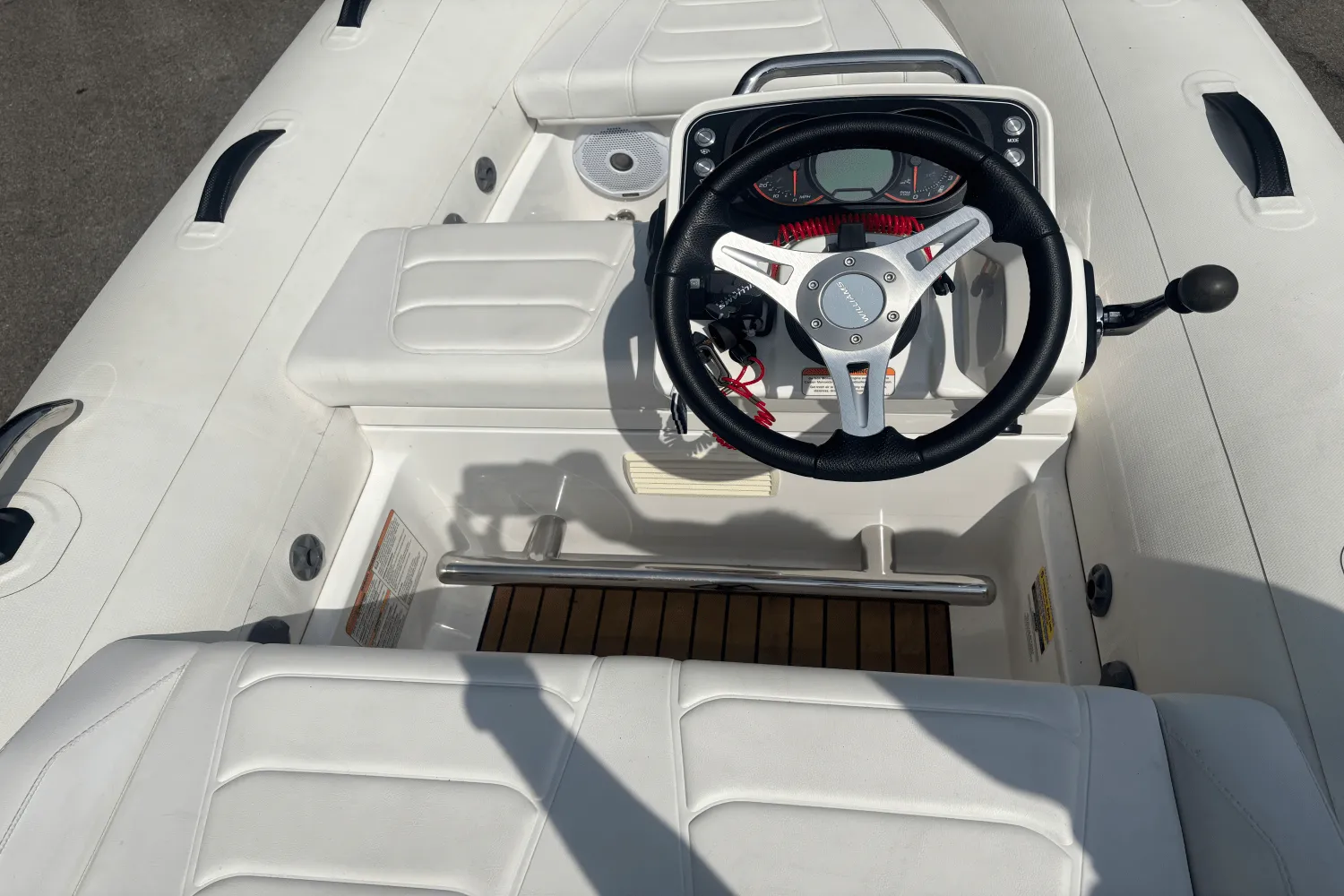 Finished in Carbon White tubes with white vinyl upholstery and teak decking, it’s as stylish as it is fast—top speed: 46 mph. Features include: Teak decking Carbon White tubes White vinyl upholstery Premium audio system LED deck lights Depth sounder Two factory covers Factory tie-down kit A rare opportunity to own a like-new, high-spec Williams 395 ready for immediate delivery.